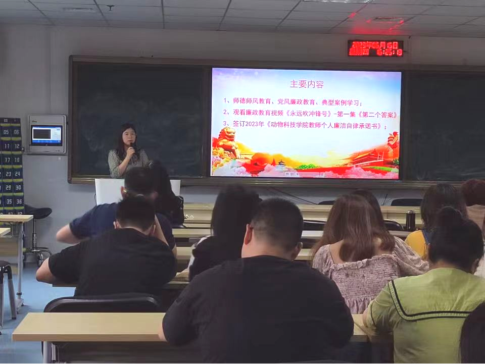 2023年6月15日,动物科技学院党总支在动科院畜牧科技大楼412会议室召开“以案为鉴,警钟长鸣”专题警示教育会,动科院全体教职工参会。