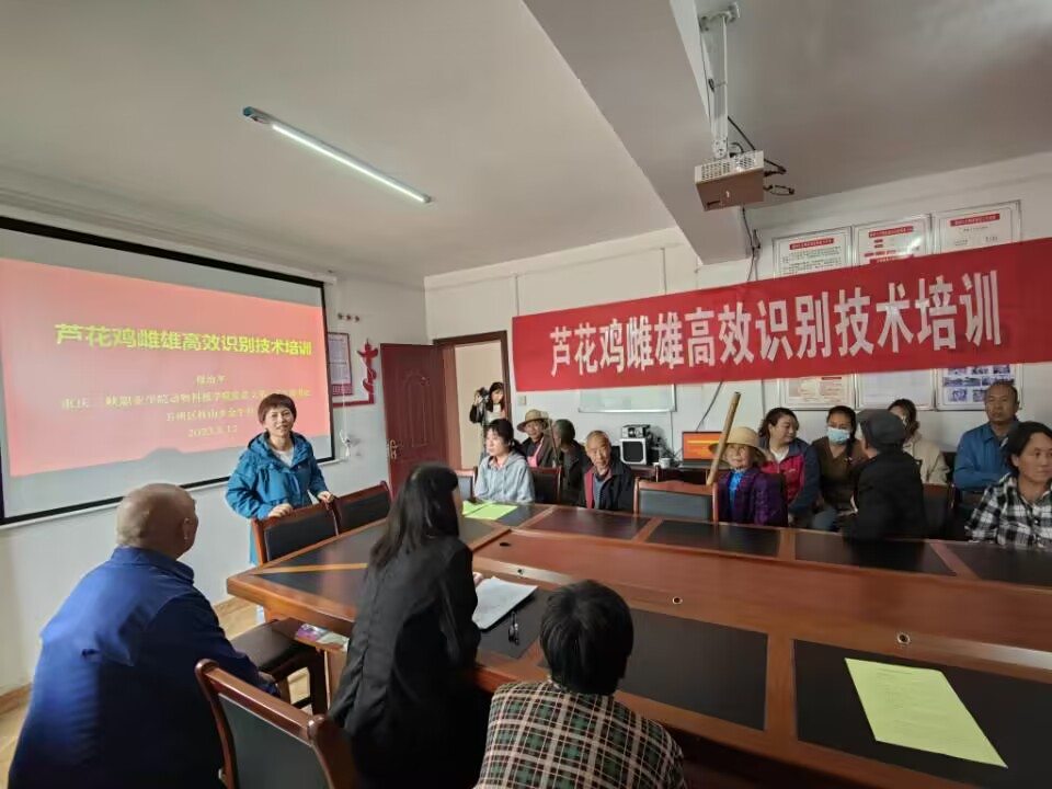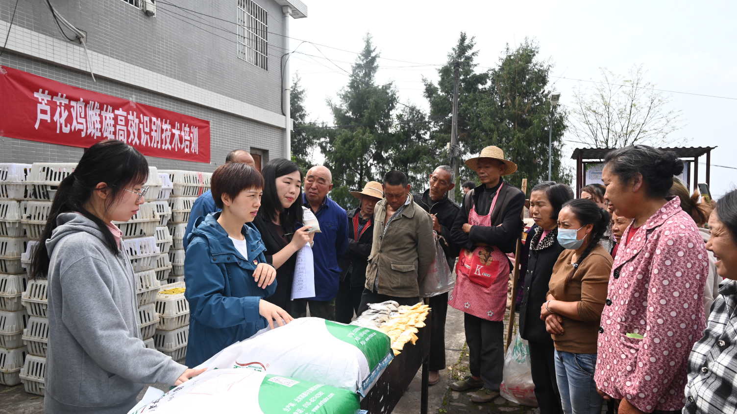动科专业教师刘莹露、谷九龙为柱山乡免费发放1000余羽芦花鸡鸡苗,开展养殖技术培训,确保鸡苗存活和饲养管理,切实促进农民增收,同时发放生物饲料添加剂、抗应激药物、抗球虫药物等,为“三农”发展贡献一份智慧与力量。