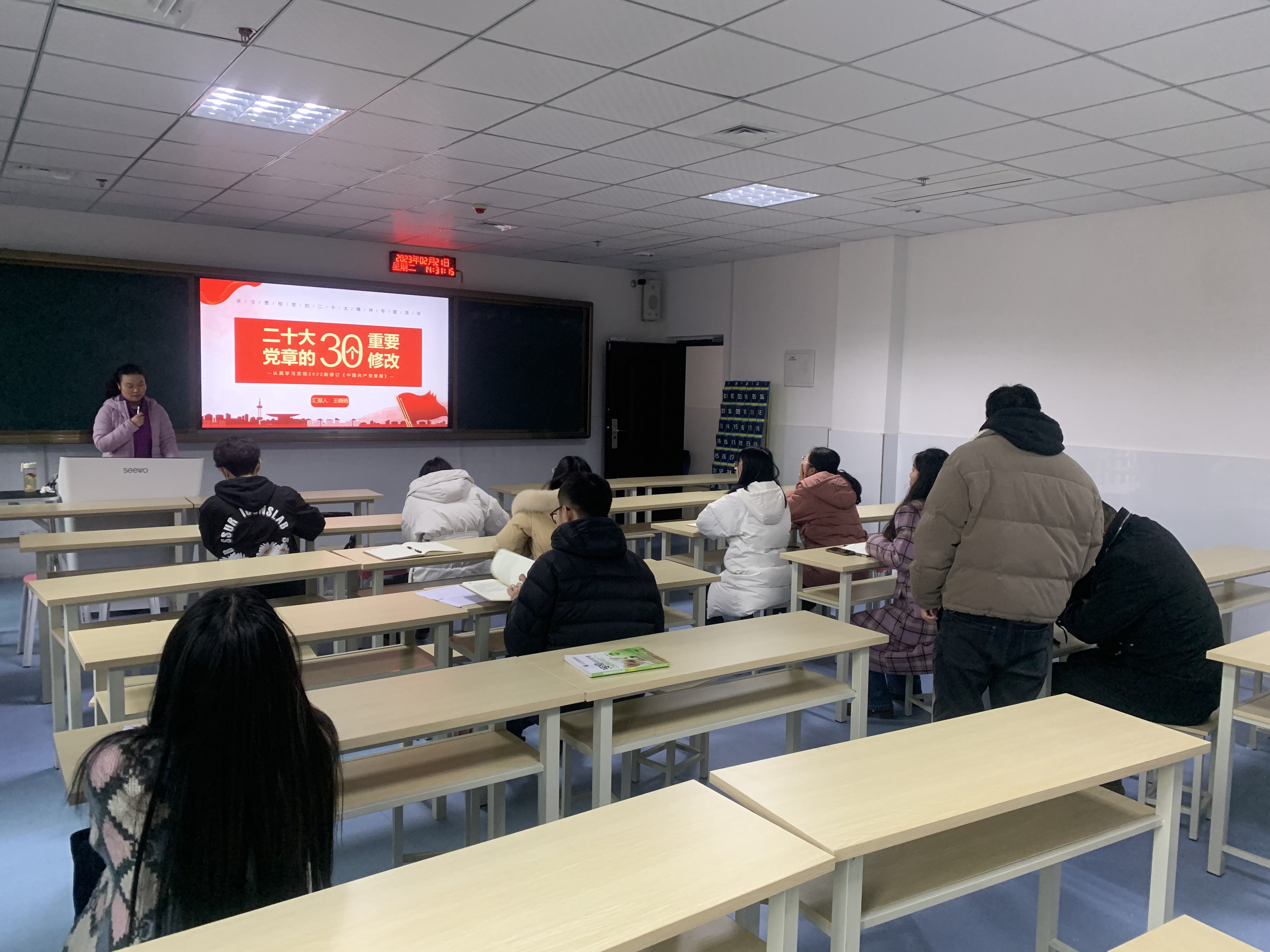 王晓艳同志强调,《中国共产党章程(修正案)》是全体党员必须共同遵守的根本行为规范,是必须遵循的总规矩。支部教职工要自觉学习党章、遵守党章、贯彻党章、维护党章,自觉加强党性修养,增强党的意识、宗旨意识、执政意识、大局意识、责任意识、切实做到为党分忧、为国尽责、为民奉献。