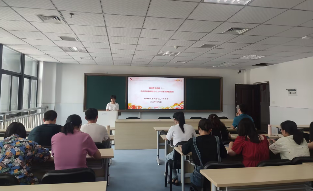 为进一步规范教师职业行为,明确师德底线,强化新时代教师职业行为十项准则,2022年9月13日下午2:30,动物科技学院党总支第一党支部在现代畜牧科技大楼414召开警示教育大会,一支部全体党员教师及联系群众教师参会。