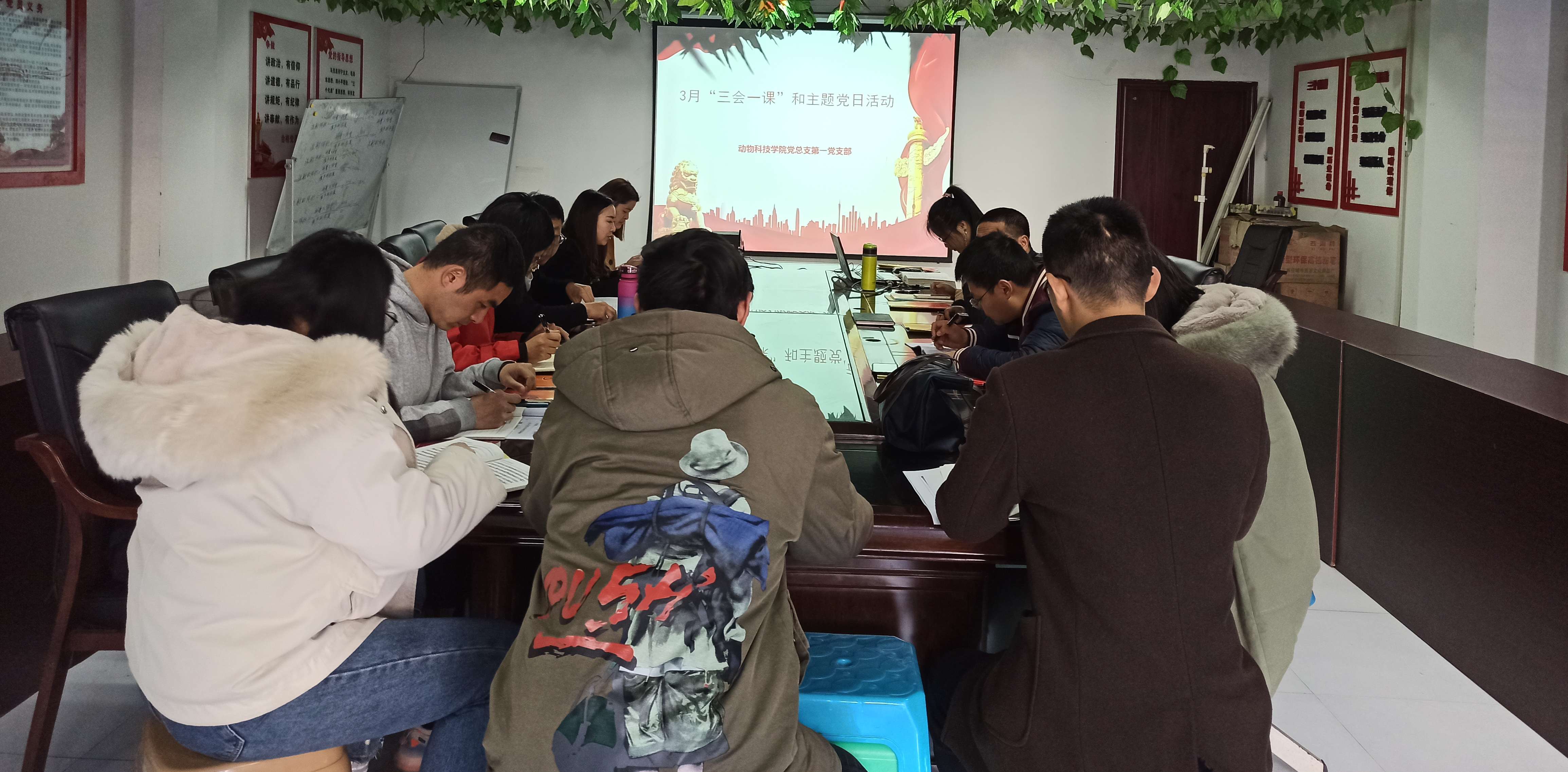 2022年3月9日上午10:30,动科第一党支部在动科楼120开展2022年3月的“三会一课”学习研讨活动,会议由支部书记陈脊宇主持,一支部全体党员参加。