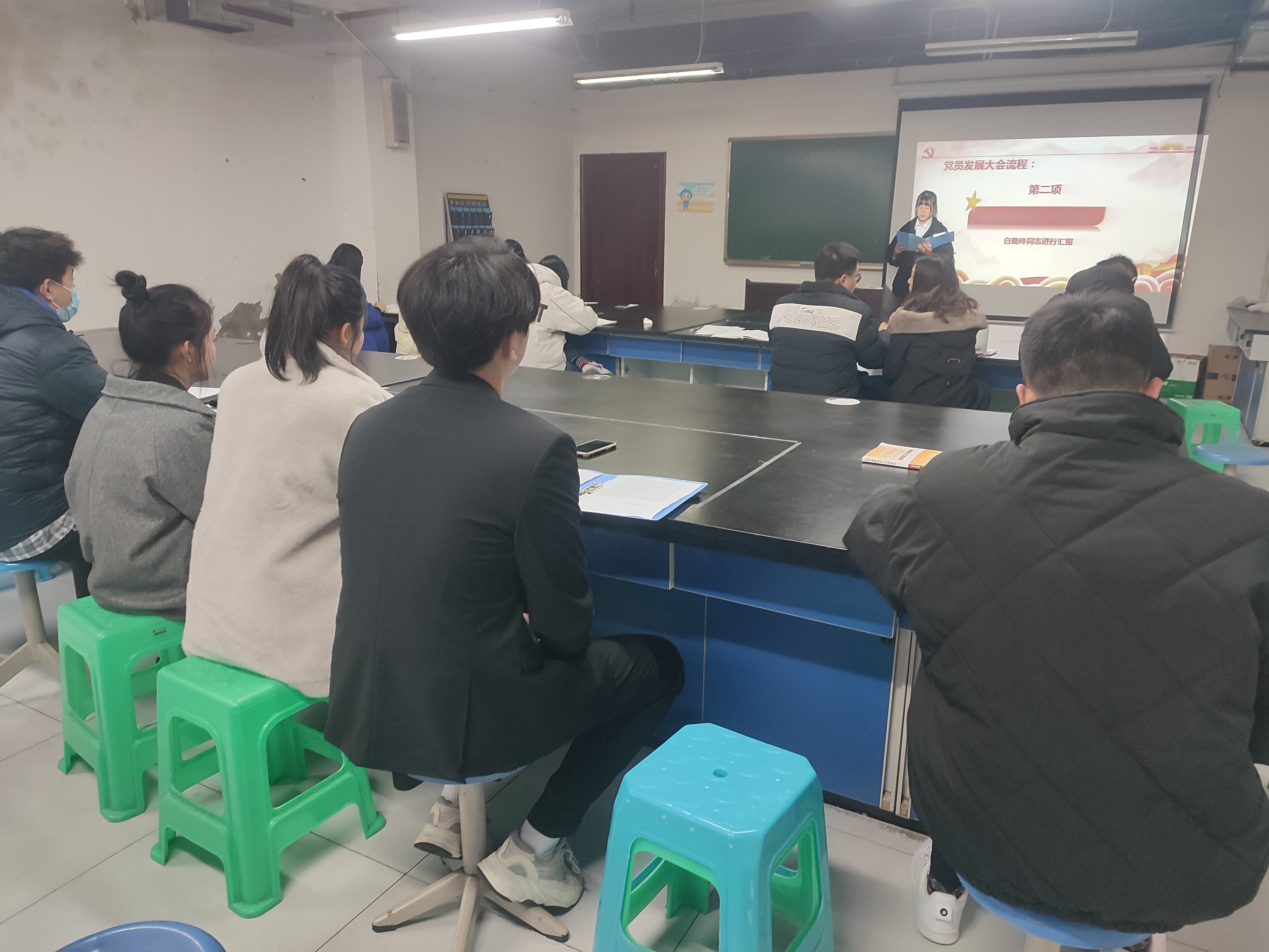 会议严格落实和执行党组织接受预备党员的程序和规定,每位发展对象依次向党组织汇报入党动机、对党的认识、思想上学习上生活上工作上的优缺点、以及十九届六中全会精神学习进展和在校表现等,各入党介绍人分别介绍发展对象的政治思想、学习状况和日常表现等情况,一支部组织委员宋绍池同志向大会报告发展对象们一年以来的考察情况和综合政审情况,支部宣传委员宣布大会讨论结果,大会认为冯仁洁等10名同志基本符合党员条件,经全体到会正式党员逐一投票表决,一致同意接收冯仁洁等10名同志成为中共预备党员。