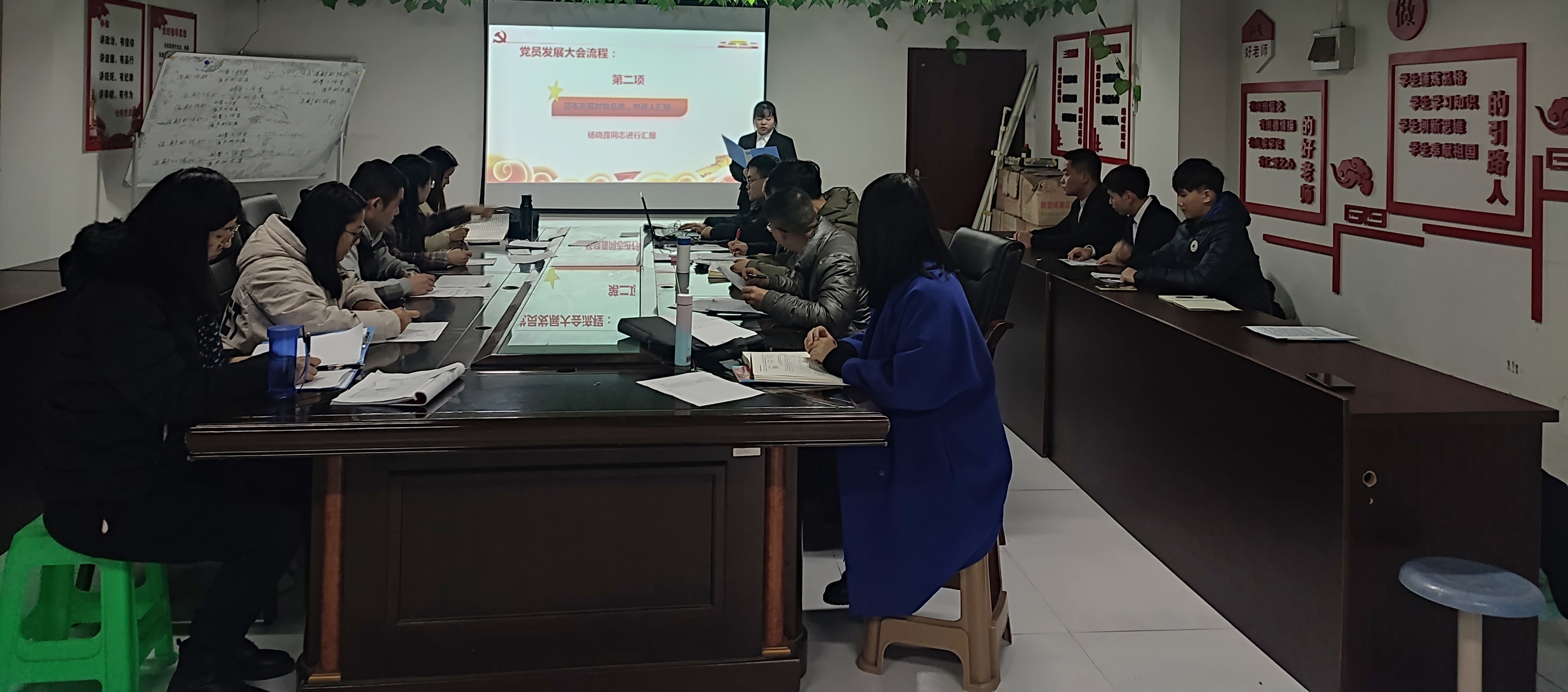 12月15-16日,动物科技学院党总支第一党支部在动科116和动科120分两批开展了预备党员发展支部大会。大会围绕接收冯仁洁等10名发展对象成为预备党员,并通过支部大会讨论决定发展对象的入党问题。动物科技学院党总支第一支部10名教师党员参加会议,会议由支部书记陈脊宇主持。