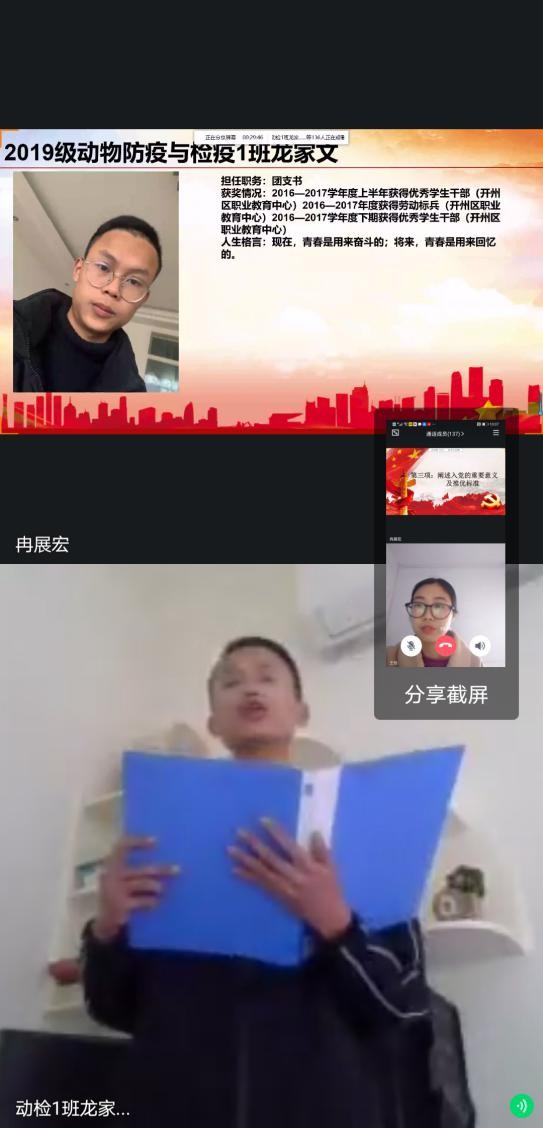 为切实做好新冠疫情期间下的党员发展工作,提高新发展党员质量,根据《中国共产党章程》、《中国共产党发展党员工作细则》和《共青团推优入党工作实施办法》,结合学校总体部署和学院实际情况,动物科技学院党总支于2020年3月30日上午十点开展“有志青年‘疫’线行”线上推优大会示范观摩活动。