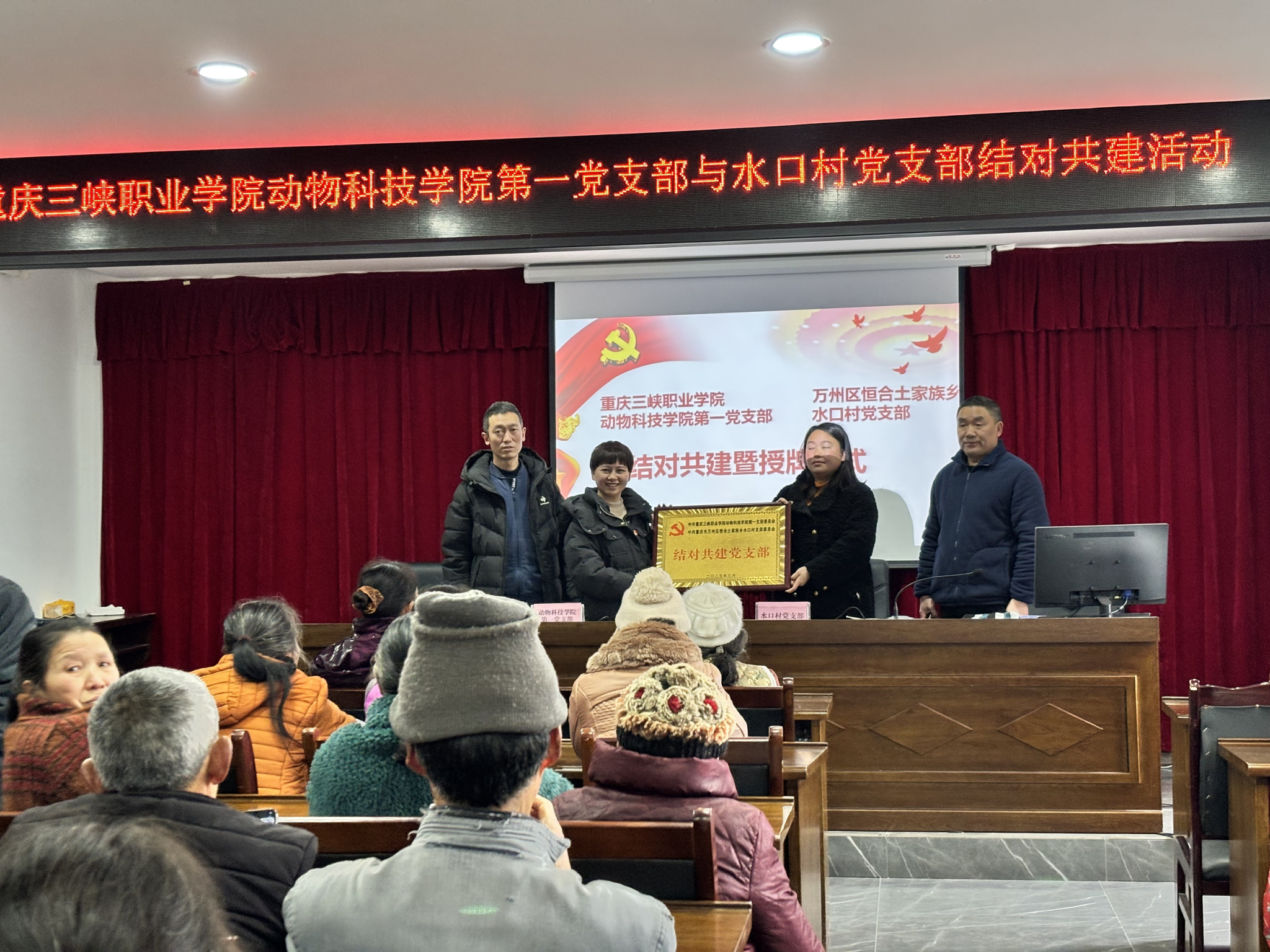 随后,动物科技学院“兽医先锋”第一党支部与水口村共建基地”的牌匾正式挂牌,标志着双方合作进入实质阶段。