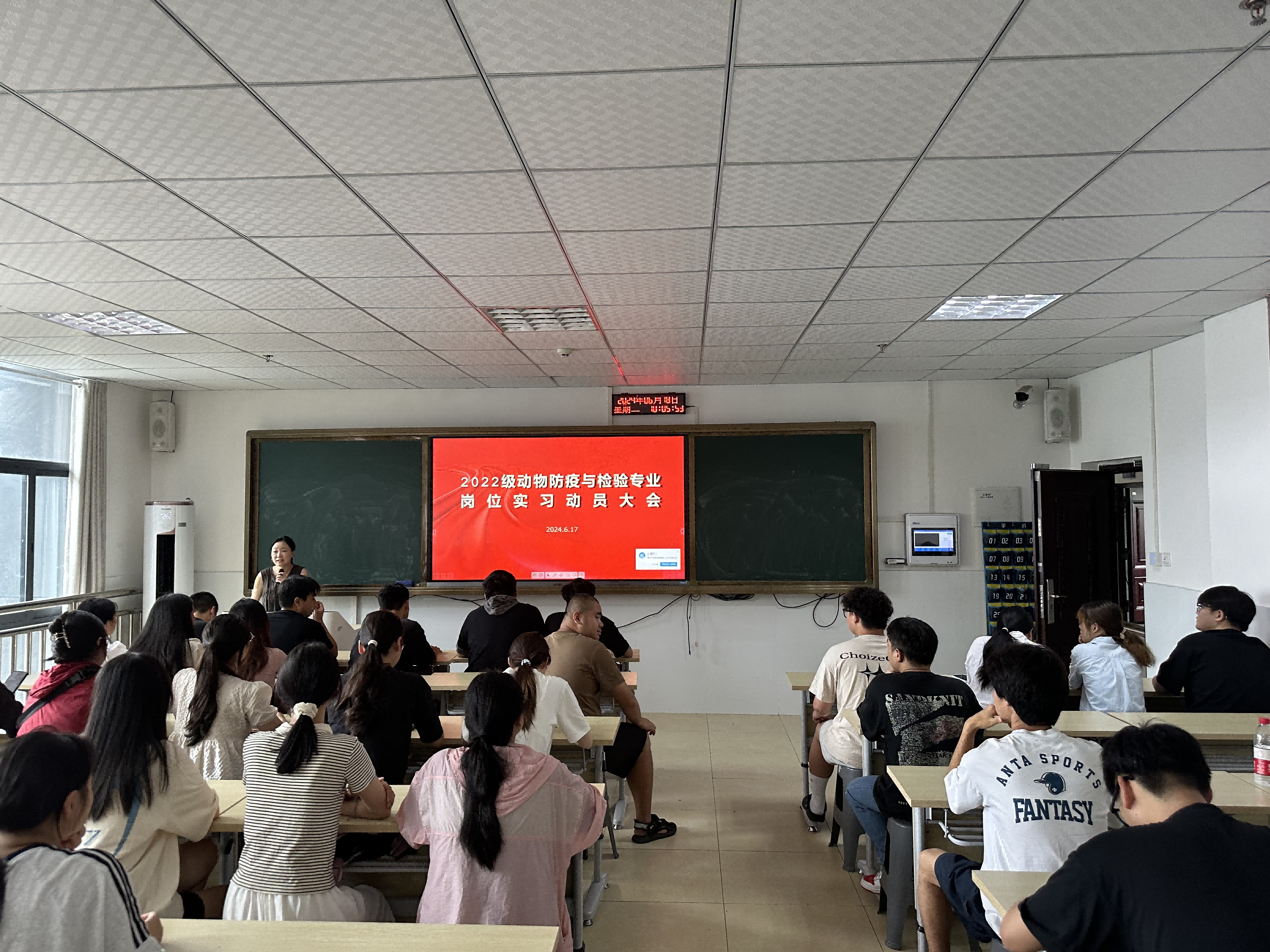为切实推进2022级动物防疫与检疫专业学生校外实习工作有序开展,帮助学生深入理解实习的目的和意义,做好校外实习准备,提升实习质量。6月18日,动物防疫与检疫专业在现代畜牧科技大楼614召开2022级全体学生实习动员大会。会议由动物防疫与检疫专业主任尹艳玲主持。