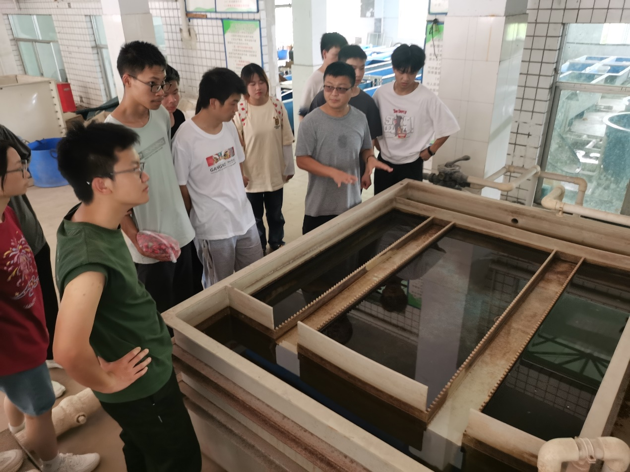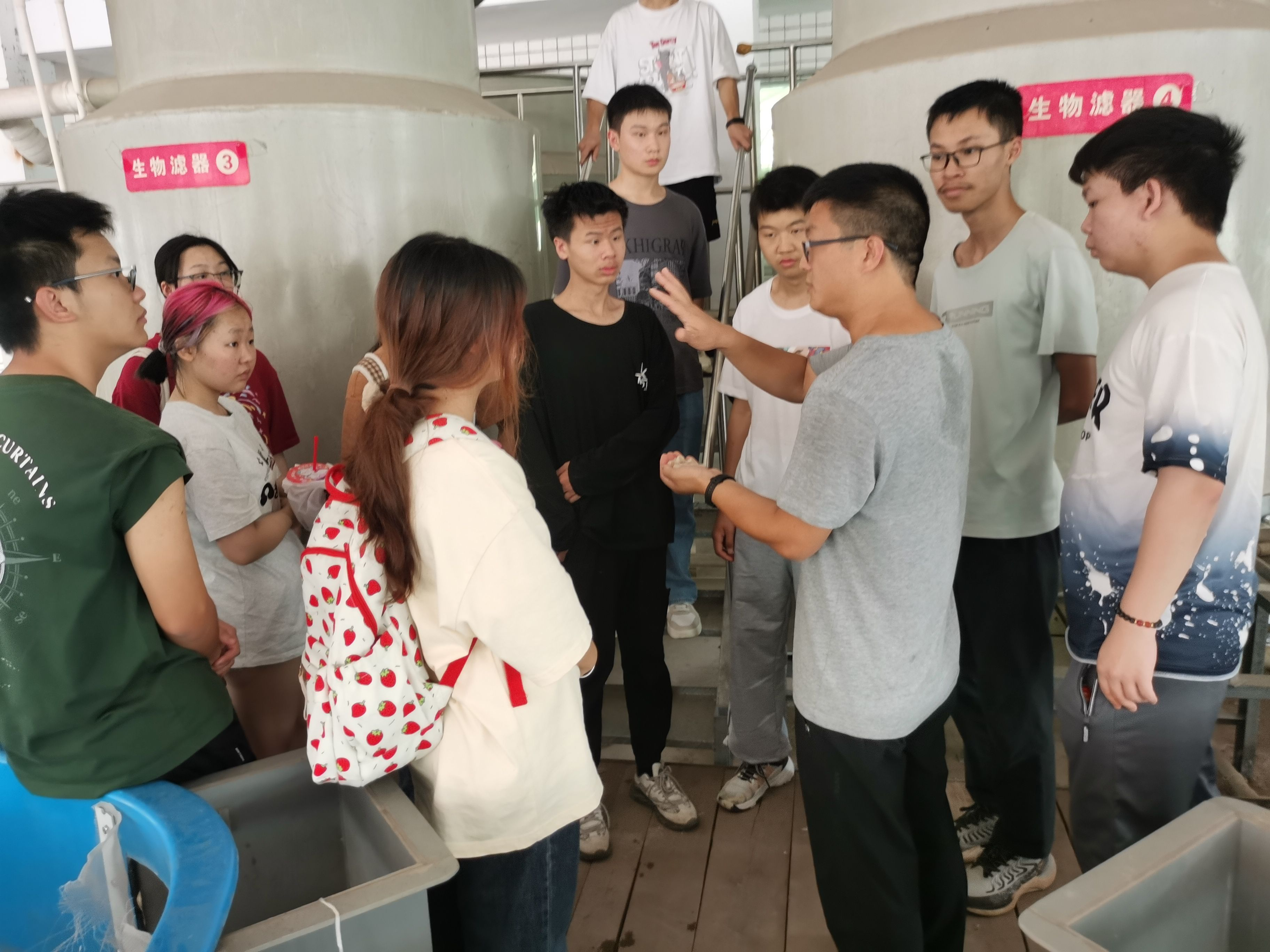 学生先后在课程老师带领下实地学习了工厂化循环水养殖车间水质管理的原理,详细介绍了增氧、过滤、生物滤塔、消毒等水质处理设施的工作原理和日常运行维护管理。分别以工厂化鱼类人工繁殖和鱼苗培育两个案例,介绍了产卵池和鱼苗池水质的调控操作要点。通过本次实践学习,学生切实感受到工厂化循环水养殖车间在人工繁殖和鱼苗培育环节的优势,也进一步理解掌握了工厂化循环水养殖车间水质管理的原理和日常运维操作技术,为后续从事相关岗位工作打下了理论和实践基础。