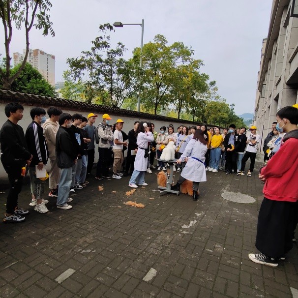 随后新生们在专业老师的带领下观摩了学长和学姐在动科楼实训室进行的实际操作。首先观摩了美容实训,通过老师和学姐的讲解和演示,初步了解了宠物美容的内容,涵盖的范围和主要学习内容。然后学长学姐们还演示了一些常用的基本技术,如留置针的安放、缝合技术,也介绍了一些外科手术器械和技术。带队老师讲解了相关课程的学习方法和技巧。通过实际观摩,引发了新生们的兴趣,不少同学主动拿起美容剪,想要进行操作。新生们通过观摩,对专业课程的兴趣进一步加深,也能体会专业技术的重要性和动手能力的重要性。对以后的专业课程的学习有了初步的了解。