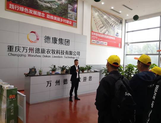 到达重庆万州德康农牧科技有限公司后,陈文龙副总经理给我们介绍了德康农牧公司的文化,从事领域,现有分公司情况,旗下的家庭农场等内容。