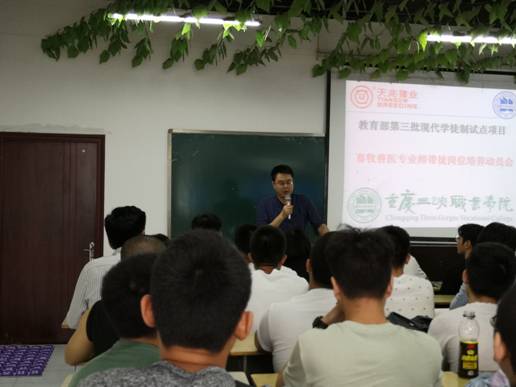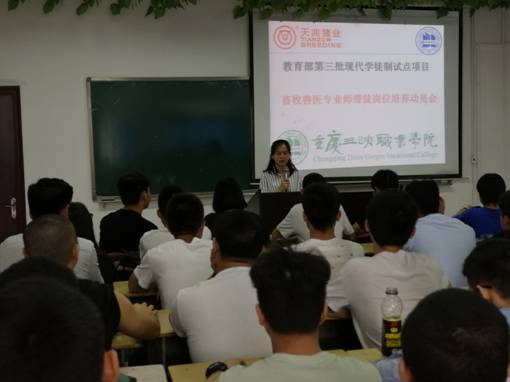 2018年6月18日上午10:30,动物科技学院现代学徒制天兆班(2018级畜牧兽医六班)开展师带徒岗位培养动员大会,会议由天兆班辅导员母治平老师主持,天兆班36名同学参加,会议有幸邀请到动物科技学院书记兼任院长张传师副教授、副院长向邦全教授、畜牧兽医专业教研室主任雍康副教授为大家讲解岗位培养的重要性及注意事项。