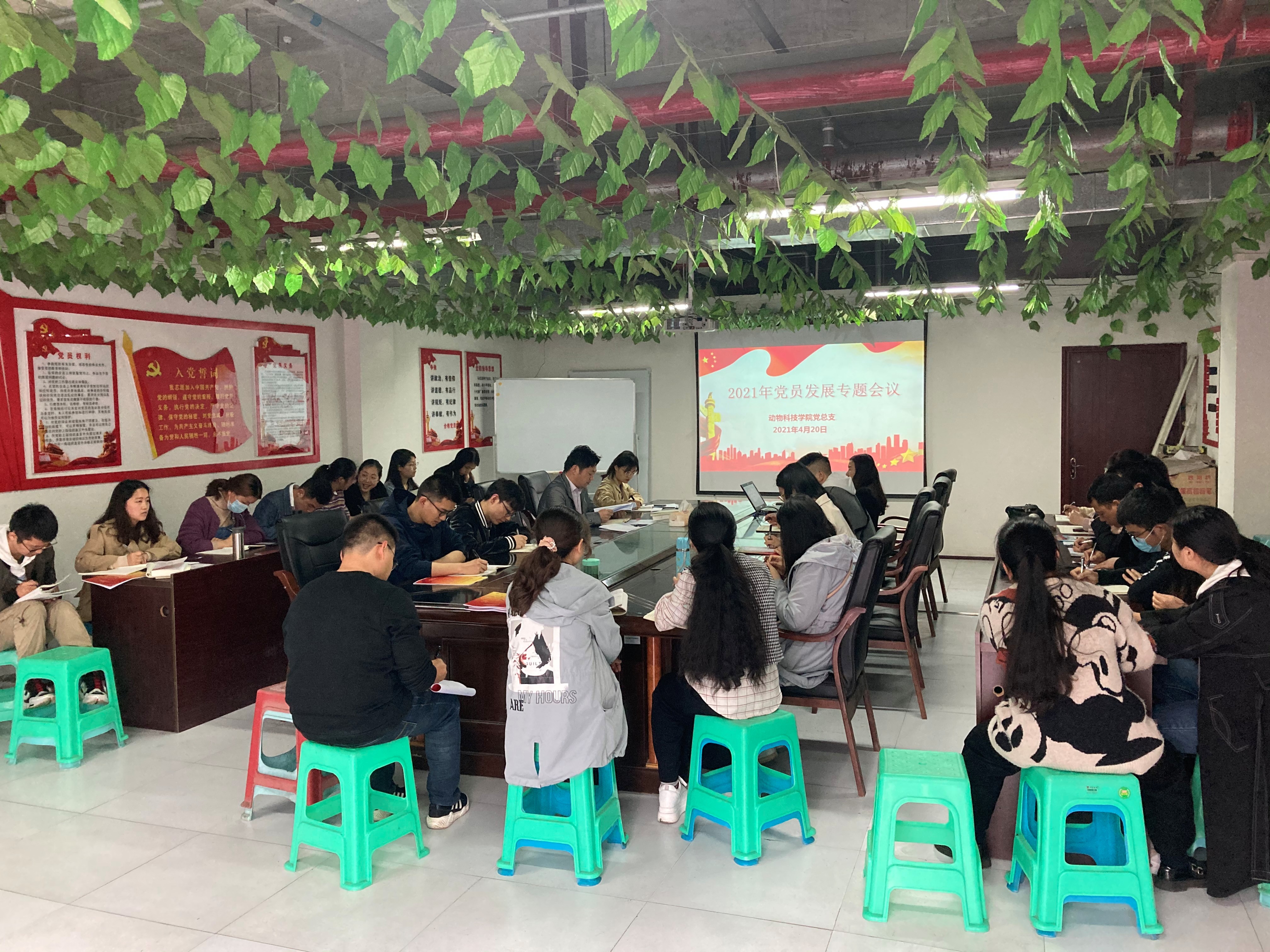 会议伊始,张传师书记明确了本次会议的目的,对2020年动物科技学院党总支发展党员工作的基本情况、具体开展情况做了详细说明,并指出工作存在的问题和2021年努力方向。