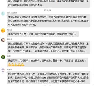 该纪录片记录详实,内容深刻,在典型故事中融入历史背景和思想点,带领大家回到那战火纷飞的年代,与主人公一起经历那炮火硝烟的战场,在观看了一段段真实史料和人物专访后,研讨中教师们更加明确如今的幸福生活来之不易,纷纷表示要在今后的教学工作中牢记初心使命,传承和弘扬伟大的抗美援朝精神和民族精神,以更加积极进取、奋发有为的精神姿态,立足本职工作,从身边小事做起,从现在做起,勤奋工作,踏实干事,积极为祖国的教育事业贡献自己的力量!