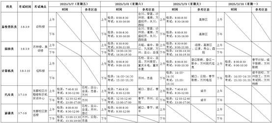 2.旅游类、汽车类考试地点:重庆市万州区天援路216号(龙都校区)。