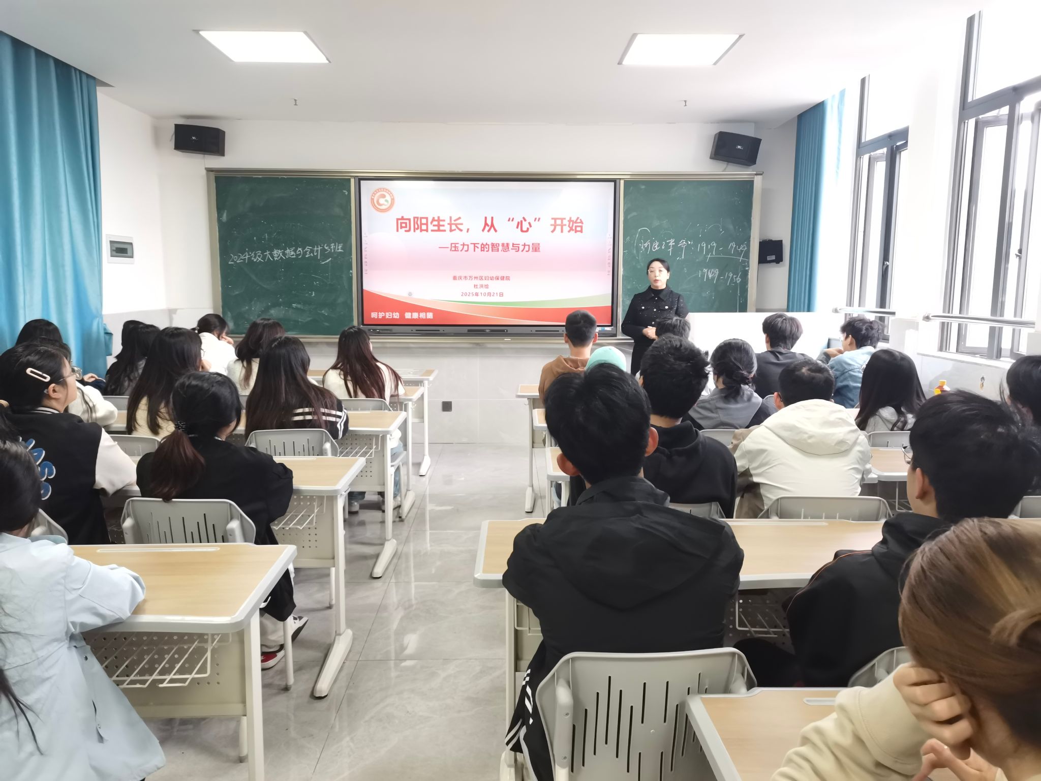 为切实关爱学院师生心理健康,帮助缓解工作与学习中的压力,筑牢心理防护屏障,学院工会委员会特邀万州区妇幼保健院儿童保健科主治医师、心理治疗师、沙盘游戏治疗师、儿保科副主任杜洪绘,于10月21日下午在龙都校区成功举办《向阳生长,从“心“开始——压力下的智慧与力量》专题心理健康知识讲座。