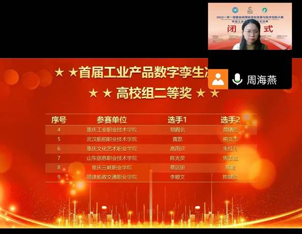 12月17日,由金砖国家工商理事会(BRICS BC)、一带一路暨金砖国家技能发展国际联盟(IASDB)、教育部中外人文交流中心等单位联合主办的一带一路暨金砖国家技能发展与技术创新大赛之首届工业产品数字孪生决赛落下帷幕,我院由骆阳、任一萍老师指导的学生陈睎、蔡远银获全国高校组二等奖。