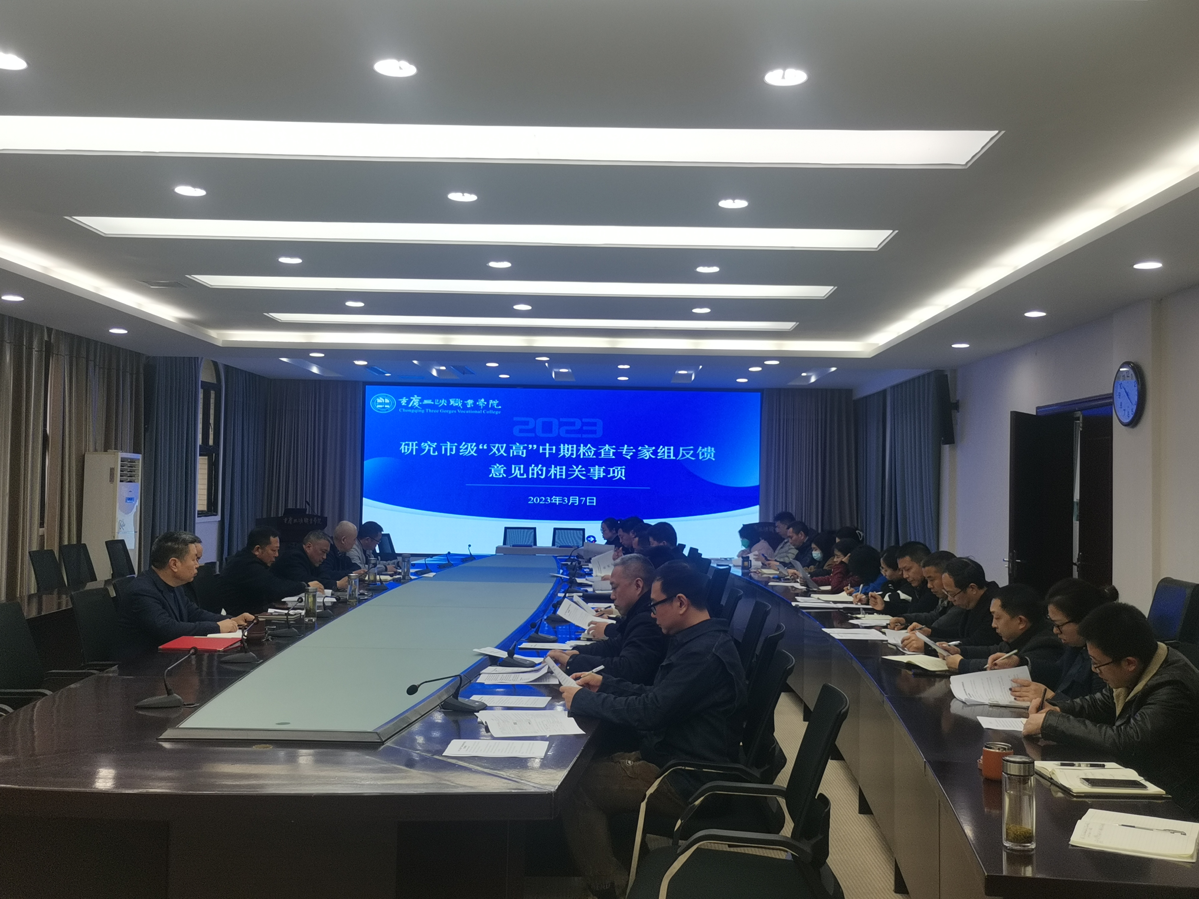 为全面加强“双高”建设,进一步提高思想认识、明确职责任务、强化工作举措,全力推进“双高”建设各项任务落地落实。3月7日,学院党委会专题研究市级双高中期检查专家组反馈意见。会议由学院党委书记陈章主持,全体党委委员参加会议。“双高”专业群、各子项目、双高办负责人列席会议。