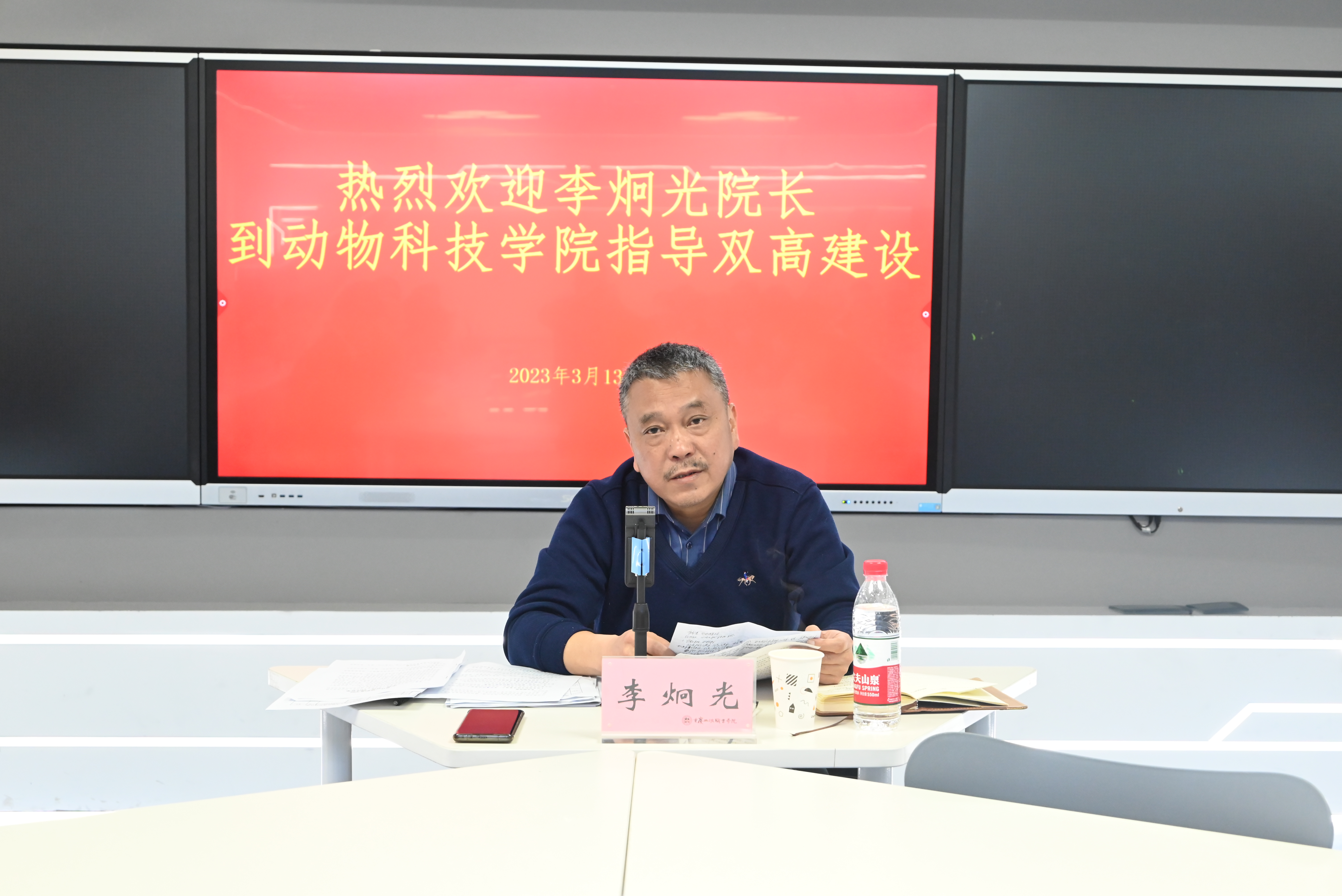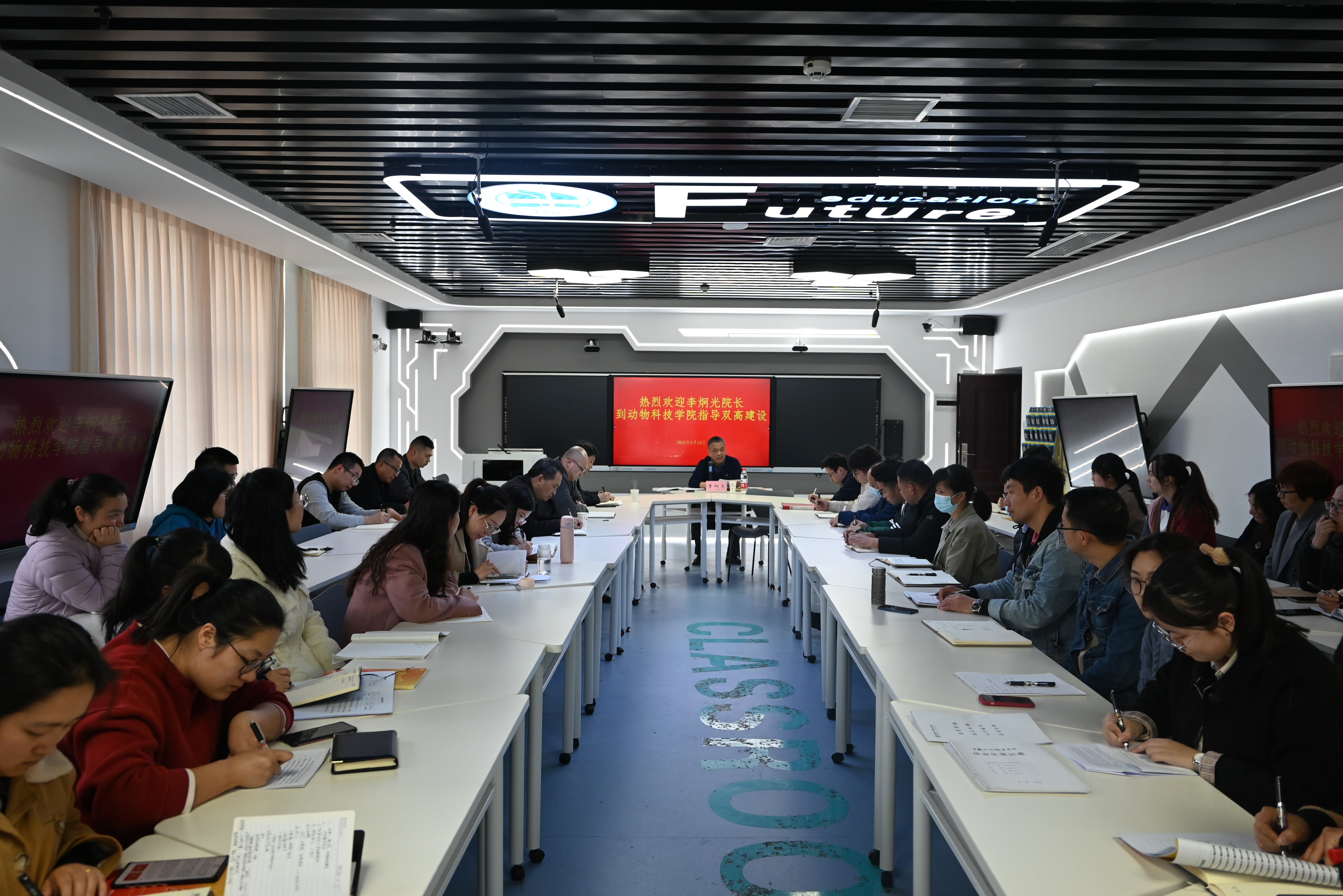 为进一步精准发力,全力推进学院“双高”建设,3月13日下午,学院院长李炯光前往动物科技学院现场指导“双高”专业群建设工作。动物科技学院党总支书记、院长张传师,副院长向邦全、陈亚强以及动科全体教职工70余人参加会议。