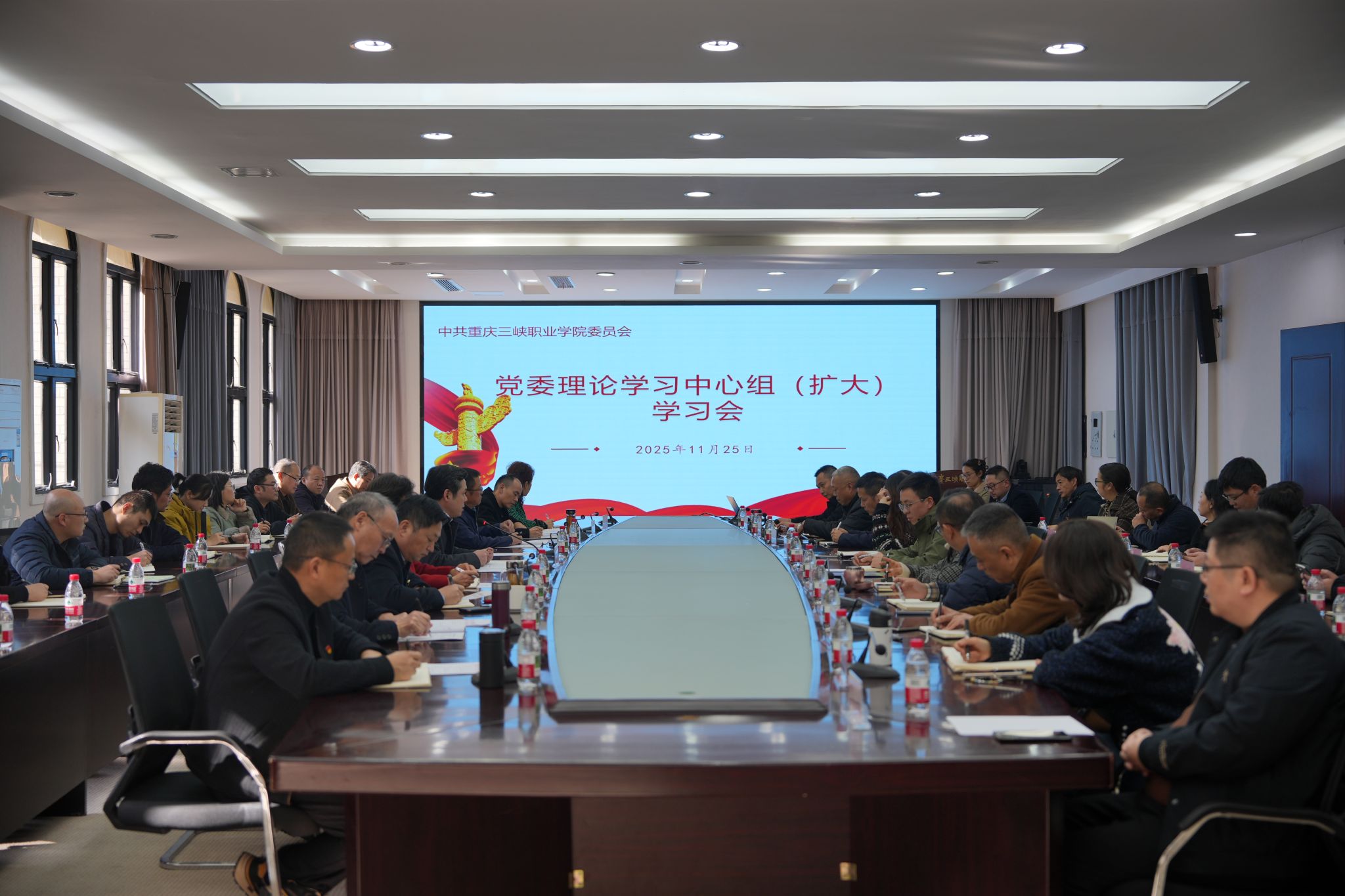 11月25日,学校召开党委理论学习中心组(扩大)会议,深入学习贯彻党的二十届四中全会精神。学校全体在家校领导、中层干部、党外人士代表参会,重庆三峡学院党委宣传部理论科科长王川萁列席旁听。党委书记谈建成主持会议并作总结讲话。