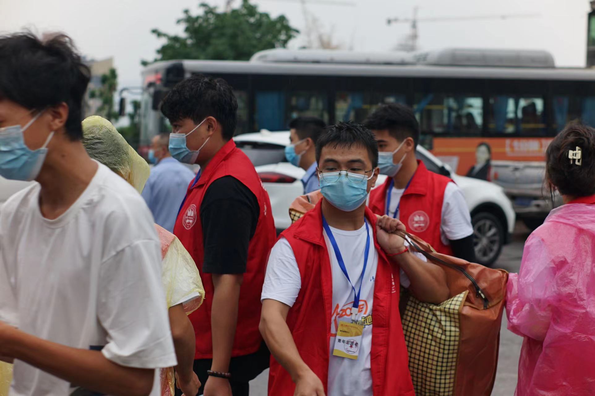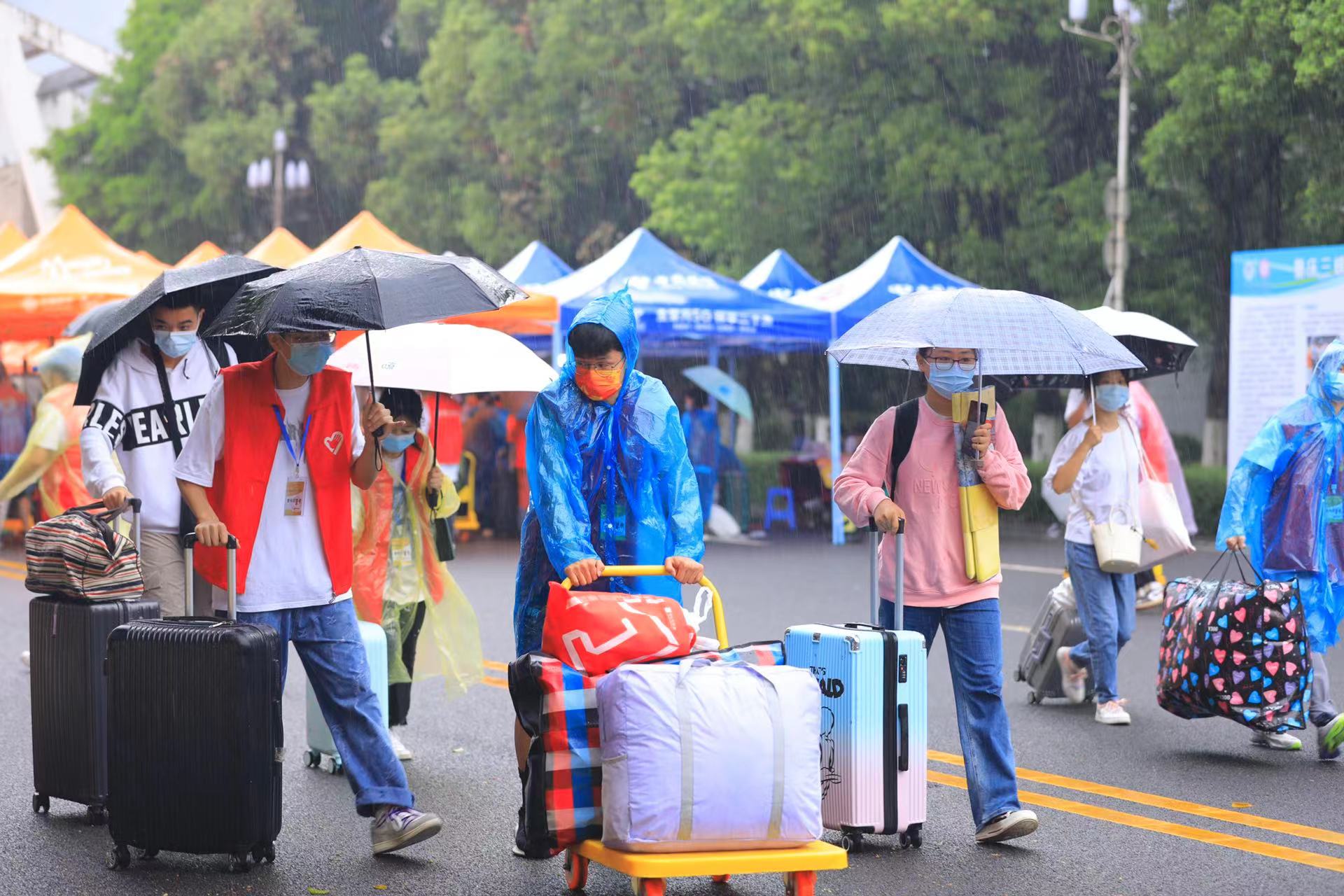 一位独自报到的外地女同学就特别无奈,“下车就下雨了,拿了伞,就没法拖箱子、拿袋子,还好有这几个哥哥在。他们真的很好,不仅主动为我拖箱子,一些不好拿的行李也用推车直接给我送到宿舍了,真的特别感谢他们。”