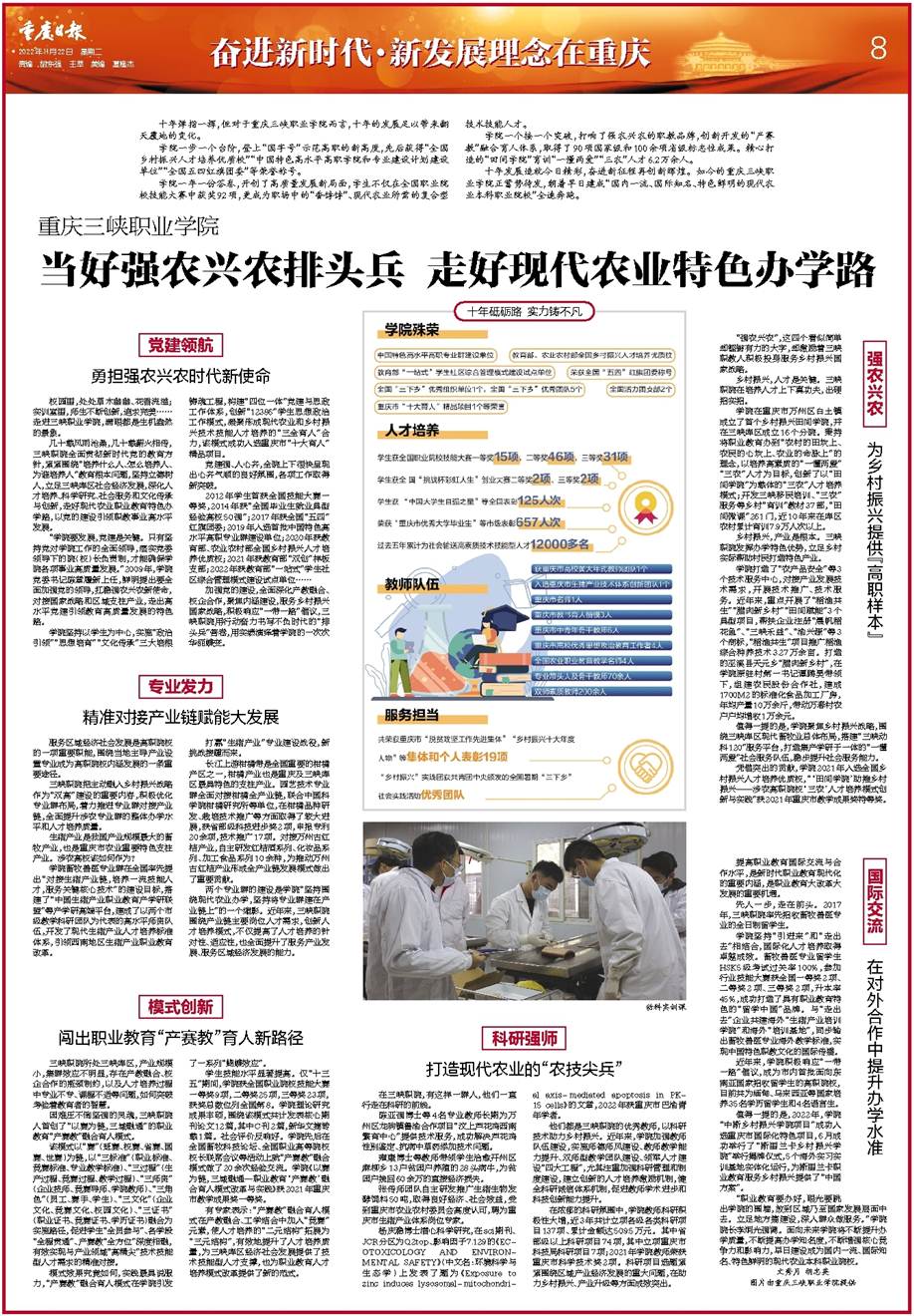 乡村振兴,人才是关键。三峡职院在培养人才上下真功夫,出硬招实招。