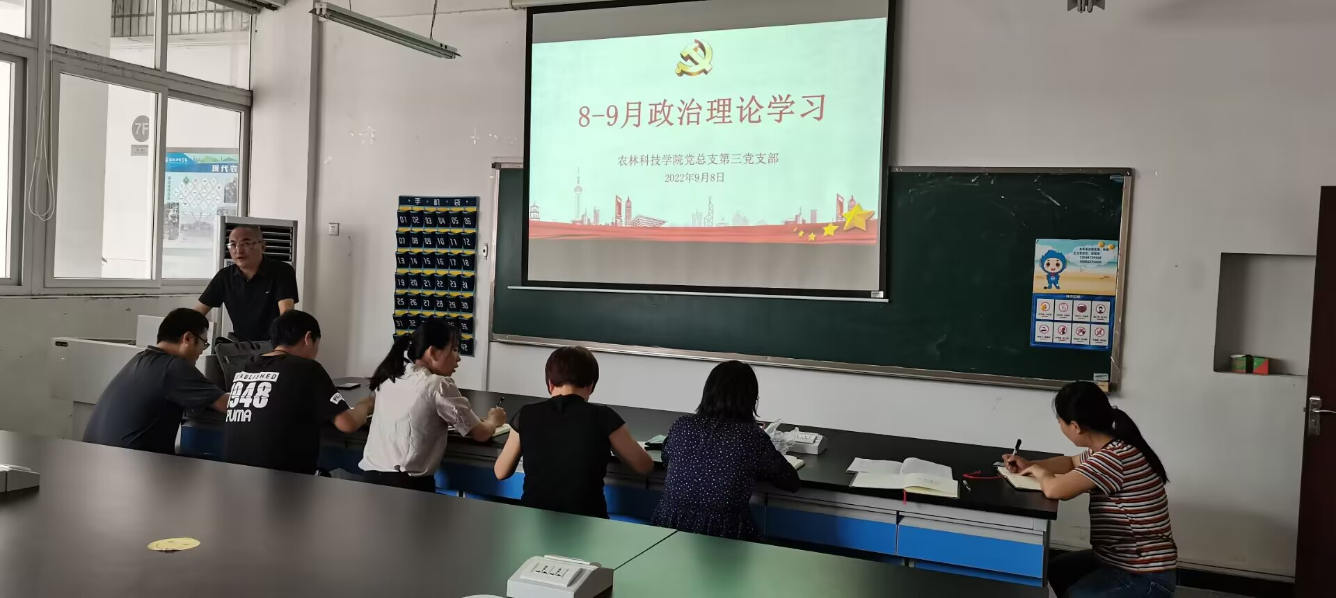 9月8日中午,农林科技学院党总支第三党支部在农林楼707室召开党员大会,进行了8-9月的“三会一课”学习,本次会议由支部书记汪立同志主持,共8名党员参加。
