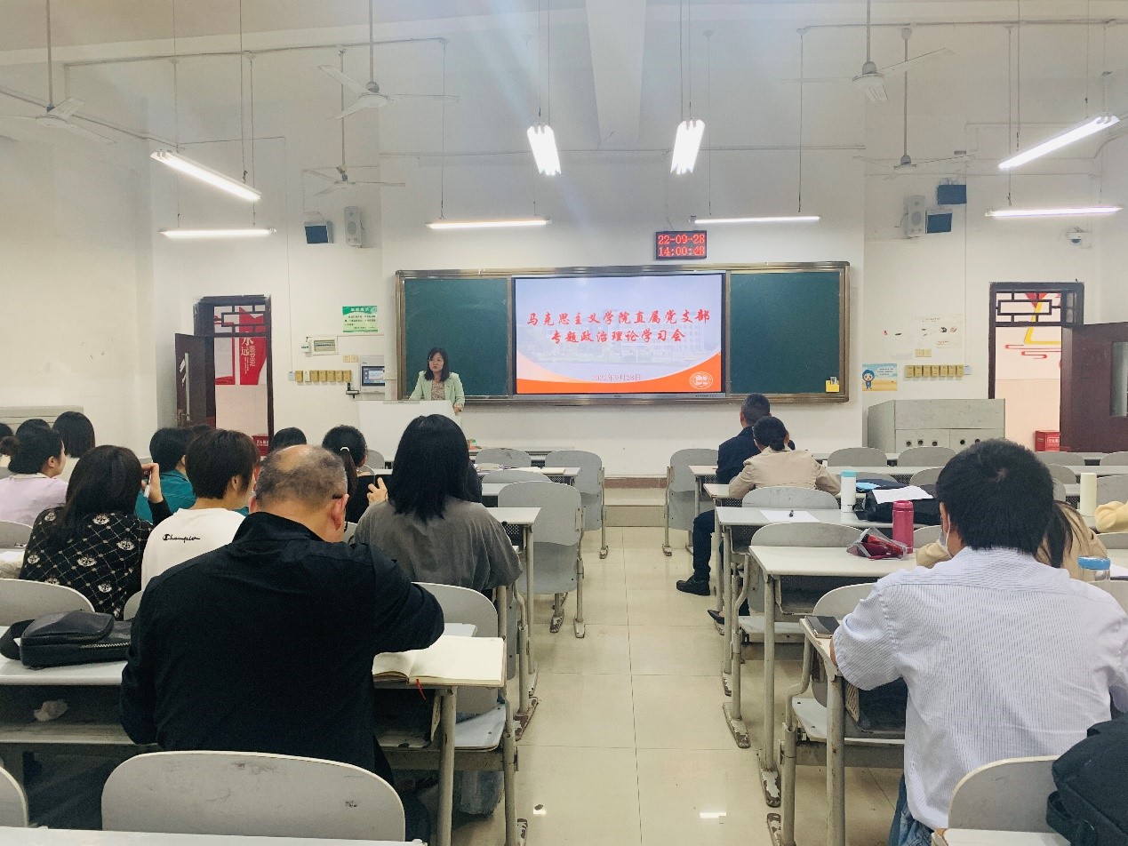 按照《中共重庆三峡职业学院委员会关于印发<迎接党的二十大胜利召开教职工专题政治学习实施方案>的通知》要求,9月28日下午马克思主义学院直属党支部全体党员聚集博雅楼108开展政治学习活动,党支部副书记丁翠娟主持学习会。为了让政治理论学习变得“有深度”“受欢迎”,马克思主义学院直属党支部创新学习方法,采取“领学+研讨+结合”的方式,让政治学习更紧密地结合实际,并指导工作。