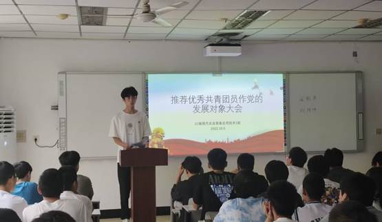 推荐优秀团员作为党的发展对象,是共青团发挥党的助手和后备军作用的具体体现,是加强共青团思想建设、组织建设的有效途径,是保持党的队伍青春、活力、巩固党的执政之基。为规范团支部“推优”工作,让学生干部了解工作开展流程,10月6日,汽车工程学院党总支在沙龙校区综合教学楼101举行了“推优”入党示范会。会议以汽车工程学院2021级农机班团支部作为示范班级。汽车工程学院党总支书记夏平、汽车工程学院第二党支部书记康学良、第二党支部支委成员、22级新班团支部书记和班长、新进辅导员老师参加了此次会议。