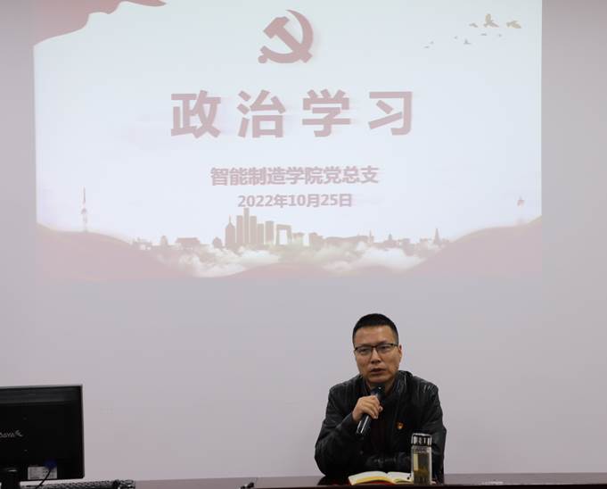 10月25日下午,智能制造学院在奥训楼308会议室开展了10月专题政治理论学习,会议由党总支副书记黄滔主持,全体教职工参加学习。
