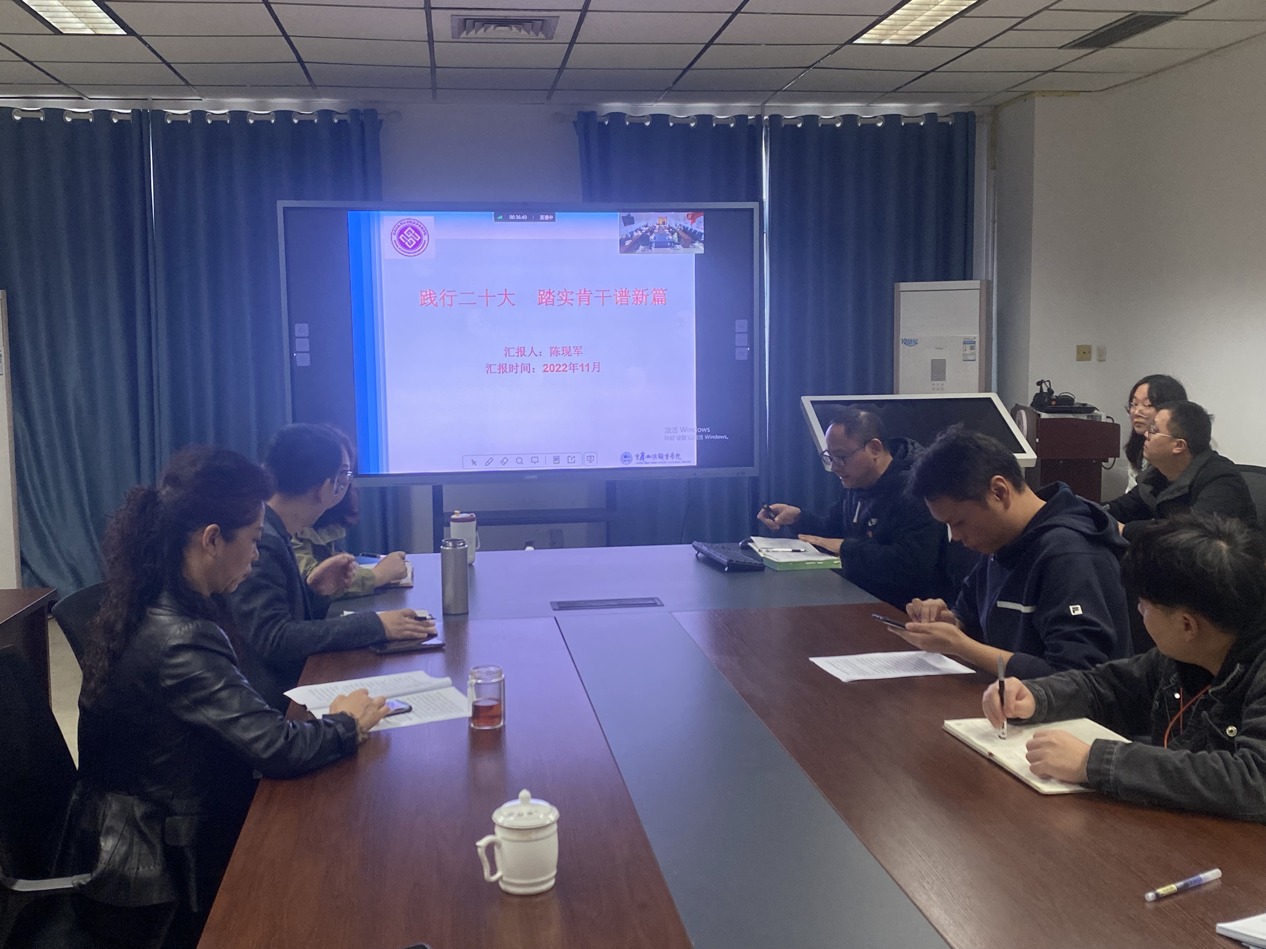 为深入学习宣传贯彻党的二十大精神,动员和激励全体师生切实把思想和行动统一到党的二十大精神上来,11月22日下午,经济管理学院在沙龙校区综合楼会议室开展党的二十大精神进校园宣讲活动。本次宣讲活动结合当前的疫情防控形势,以线上线下相结合的模式开展,学院全体教职员工参加了宣讲学习,宣讲会由学院专职组织员李静主持。
