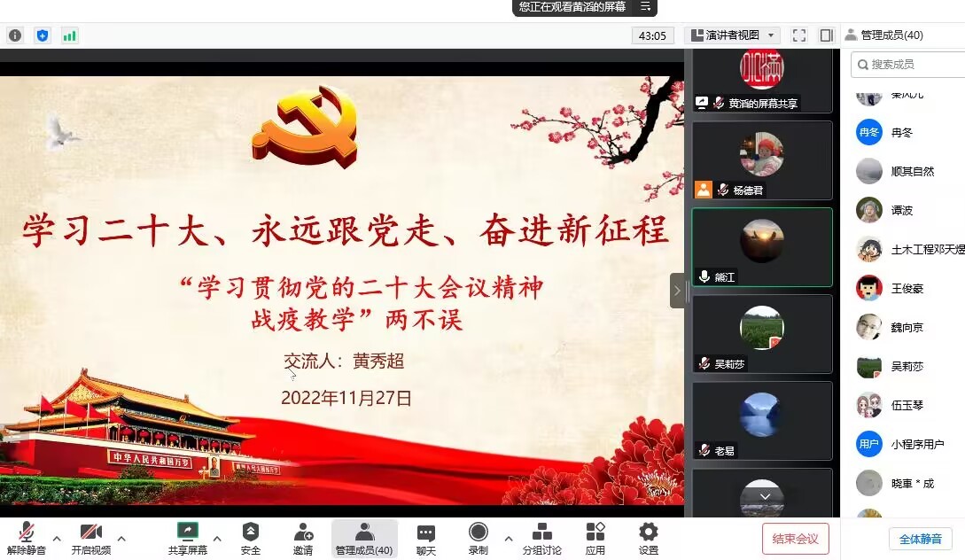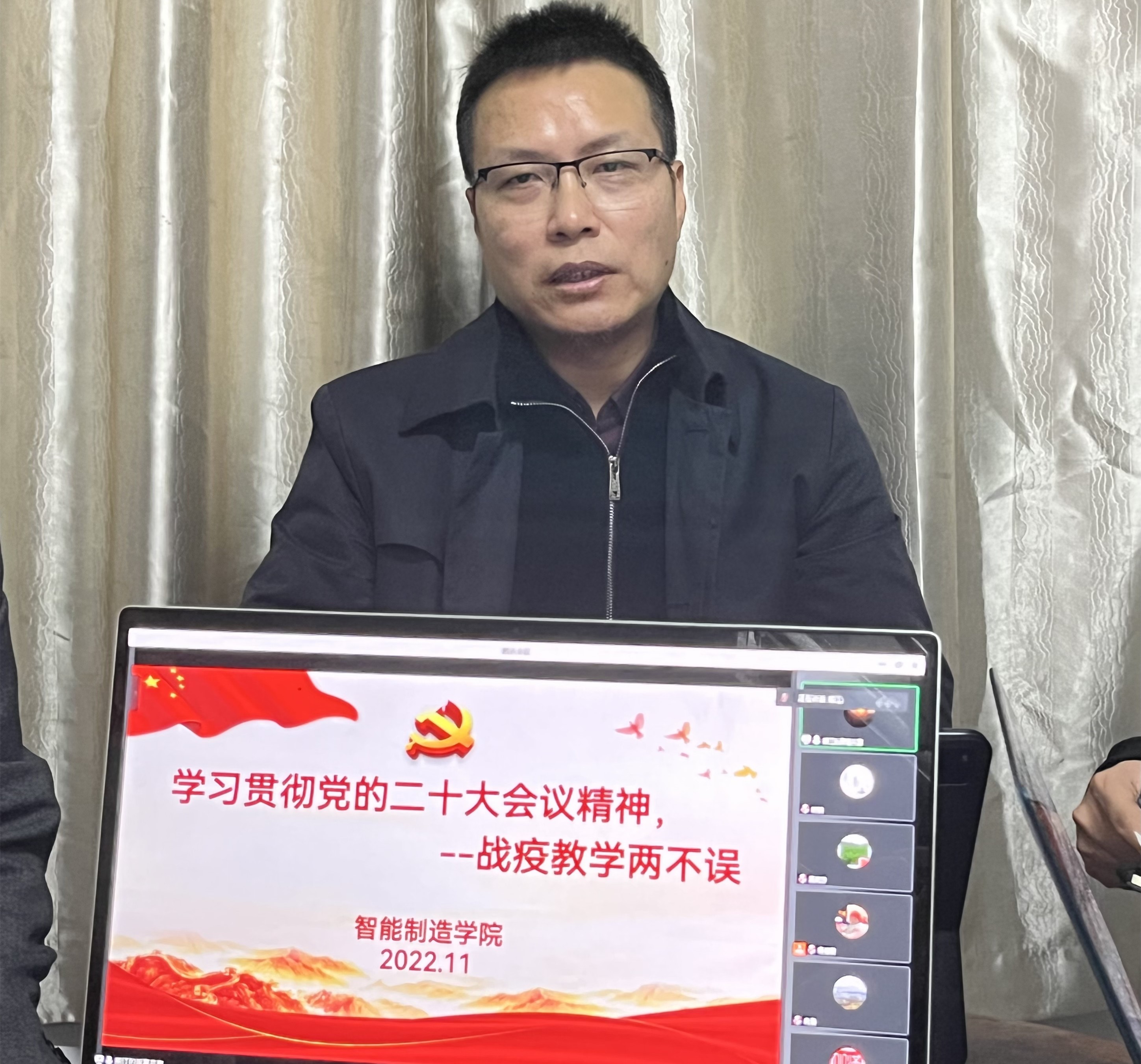 11月27日,智能制造学院在留学生公寓305值班室以线上线下相结合的形式开展了11月专题政治理论学习,全体教职工参加了学习,会议由党总支副书记黄滔主持。