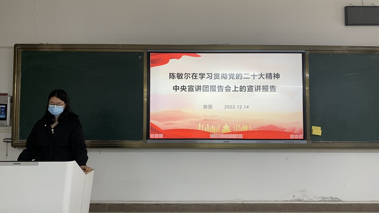 学习宣传贯彻党的二十大精神是学院当前和今后一个时期的首要政治任务,全体思政课教师要学思结合、学深悟透,积极做好党的二十大精神宣讲工作,充分履行好岗位职责,进一步做好本职工作,为推动学校各项事业发展积极贡献力量。