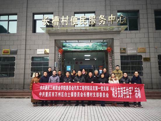 为巩固拓展脱贫成果同乡村振兴有效衔接,与结对的农村党支部脱贫不脱钩,持续开展好机关事业单位党支部和农村基层支部结对共建“手拉手”活动,2023年1月5日,汽车工程学院第一党支部全体党员赴白土镇长槽村开展“城乡支部手拉手”主题党日活动。