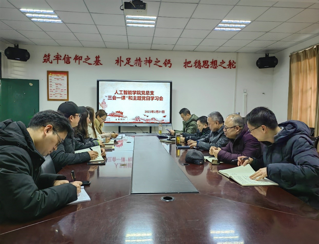 为深入学习贯彻党的二十大精神,2月21日中午,人工智能学院党总支在信科楼503开展1-2月“三会一课”和主题党日学习教育专题会。会议由人工智能学院党总支书记熊泽明主持,总支委员、二级学院中干、支部书记等10人参加。
