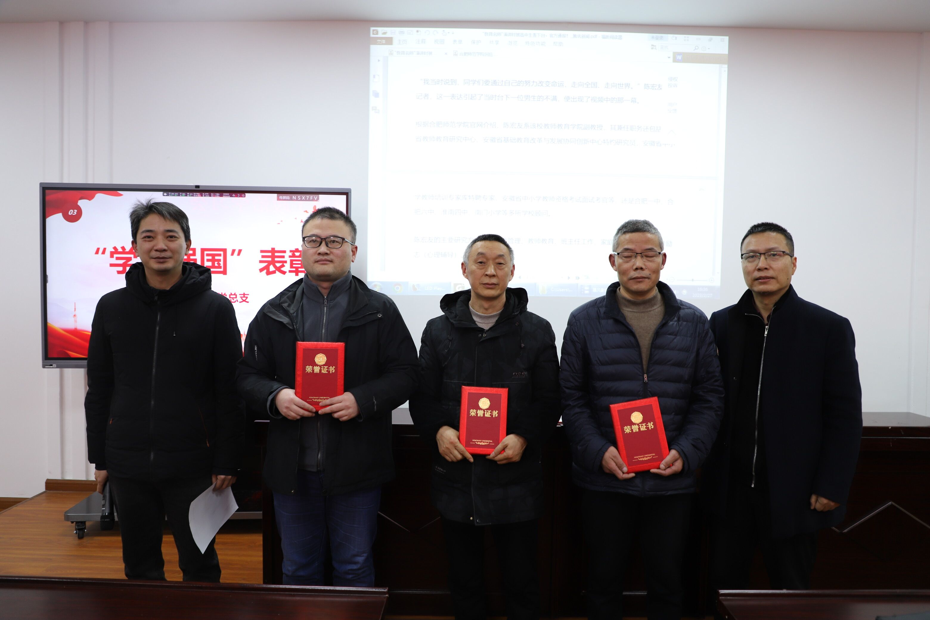根据“学习强国”APP学习积分排名,学院对2022年度积分排名前18名教师颁发了荣誉证书和奖品。学院党总支副书记黄滔宣布表彰名单,党总支书记熊江为获奖教师颁奖。