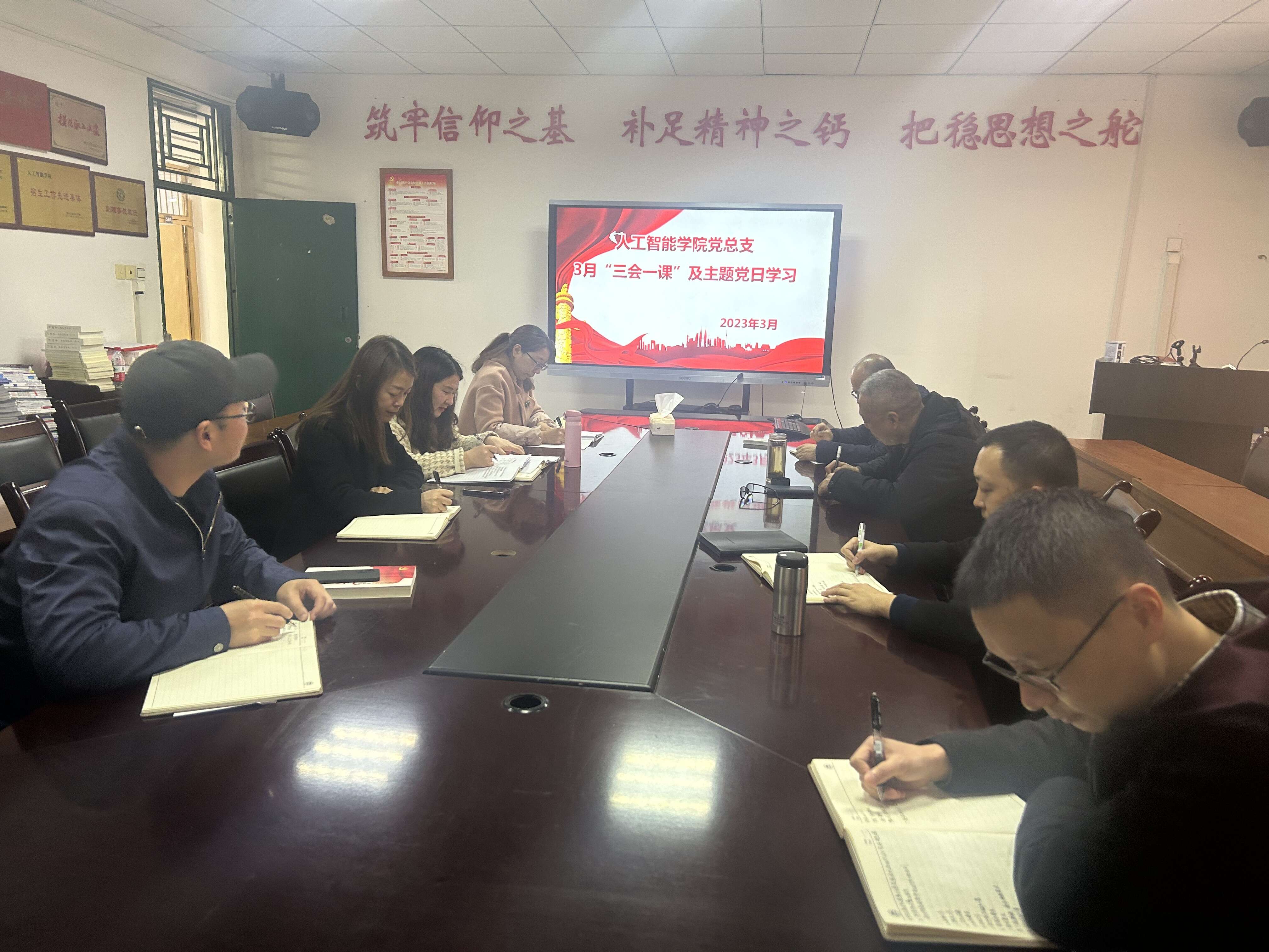 3月21日,人工智能学院党总支在信科楼503开展3月“三会一课”和主题党日学习教育专题会。会议由人工智能学院党总支书记熊泽明主持,总支委员、中干、支部书记等10人参加。