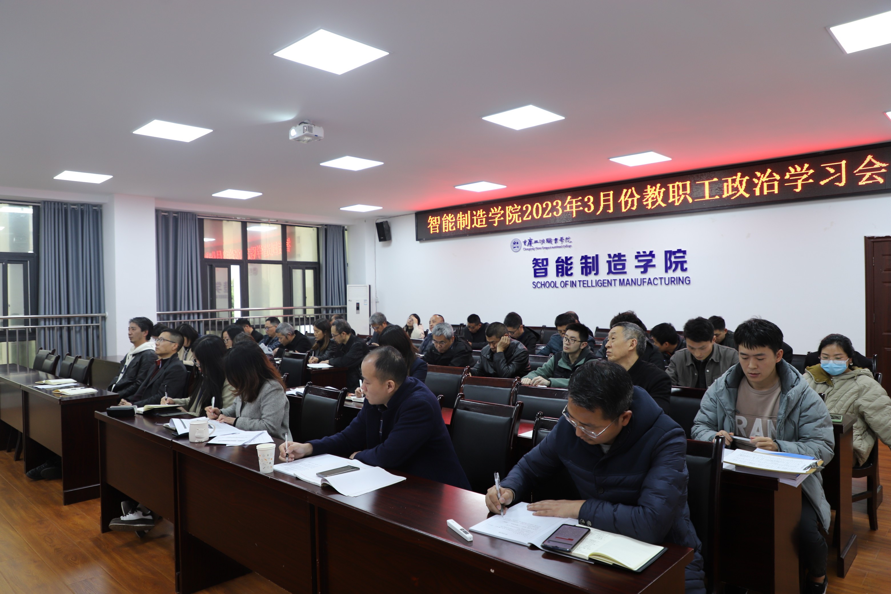 3月23日下午,智能制造学院在奥训楼308会议室开展了3月政治理论学习和警示教育学习会,会议由党总支副书记黄滔主持,全体教职工参加学习。