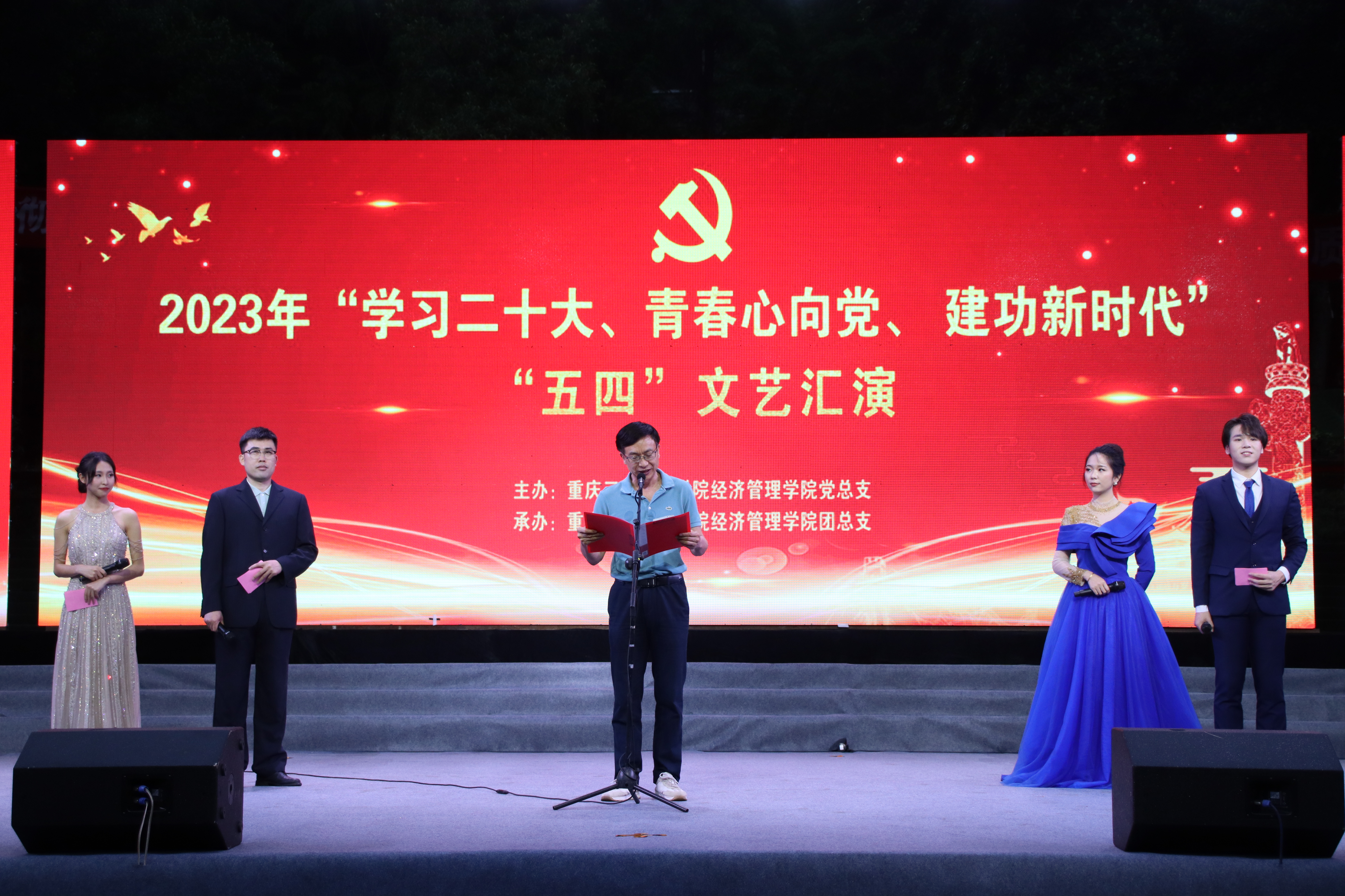 为深入学习贯彻习近平新时代中国特色社会主义思想和党的二十大精神,继承和弘扬五四精神,展示青年的青春风采,奏响新时代的青春之歌,5月5日晚,经济管理学院在沙龙校区手拉手广场顺利举行了以“学习二十大,青春心向党,建功新时代”为主题的五四文艺汇演活动,学院党委委员、统战部部长杨吉林,学院学工部副部长、团委副书记彭钦,经济管理学院党总支书记、院长赵琳,副书记张恩广,副院长陈现军、潘多以及2000余名师生代表参加。