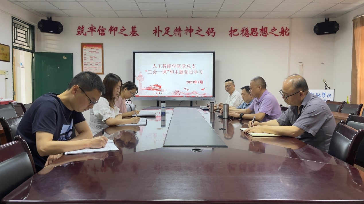 7月6日下午,人工智能学院党总支在信科楼503开展7月“三会一课”和主题党日学习教育专题会。会议由人工智能学院党总支书记熊泽明主持,总支委员、中干、支部书记等7人参加。
