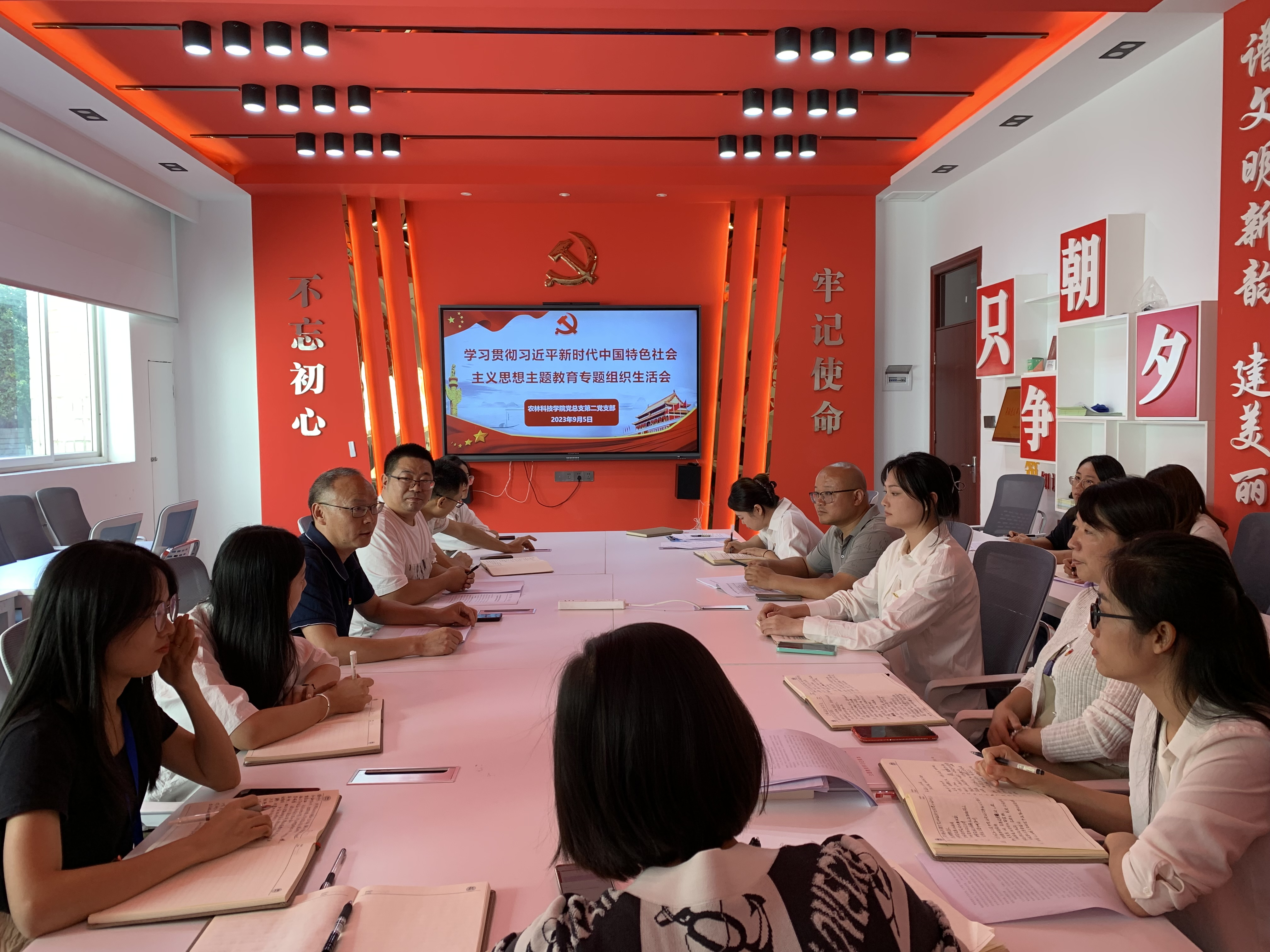 2023年9月5日,农林科技学院党总支第二党支部在农林楼203会议室召开了学习贯彻习近平新时代中国特色社会主义思想主题教育专题组织生活会。学院党委委员、组织部部长熊辉俊同志,动物科技学院党总支组织委员谭丽同志、党委组织部方淑兰同志列席。会议由支部书记吴琼同志主持。