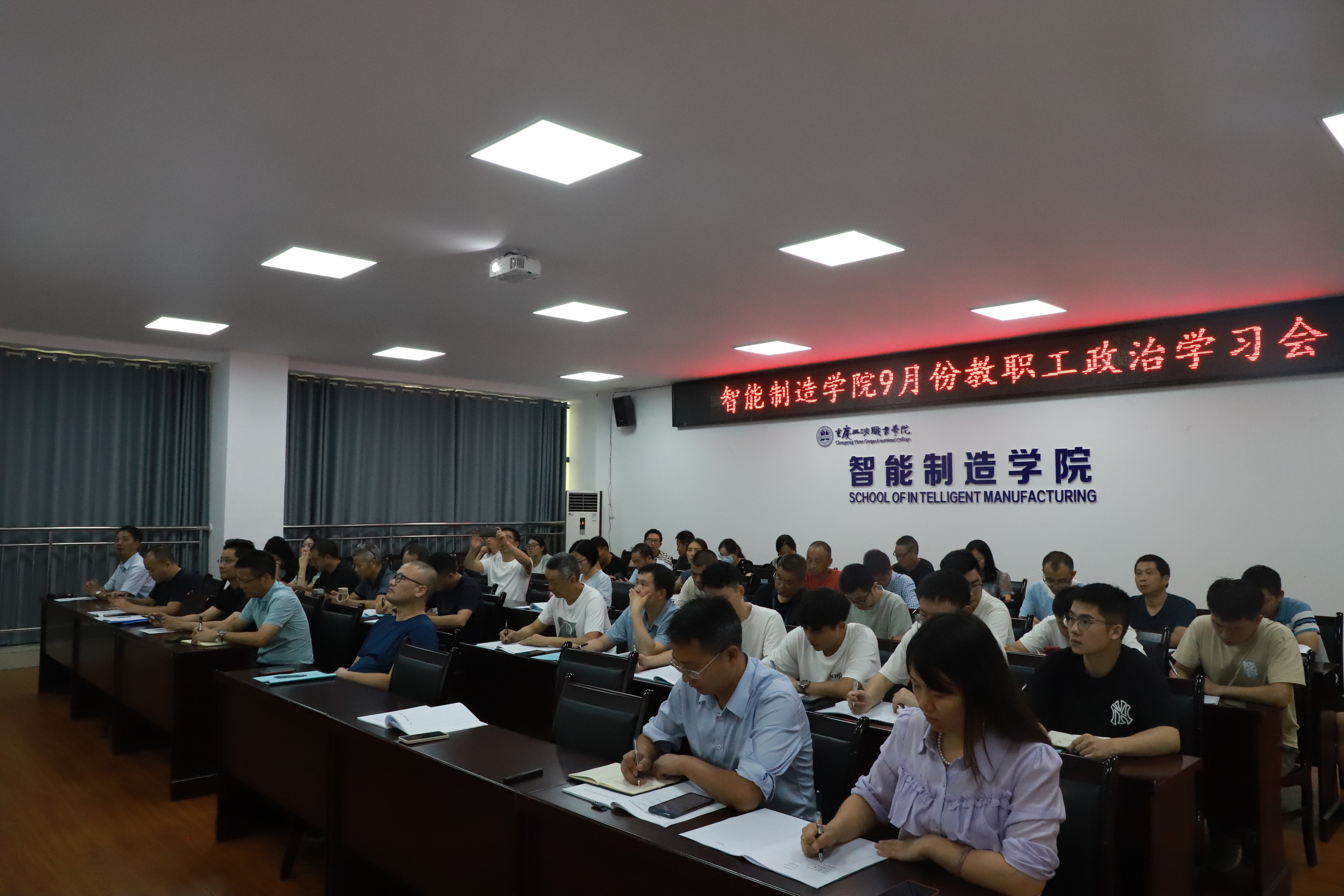 9月8日下午,智能制造学院在奥训楼308会议室开展了9月政治理论学习,会议由党总支副书记黄滔主持,全体教职工参加了学习。