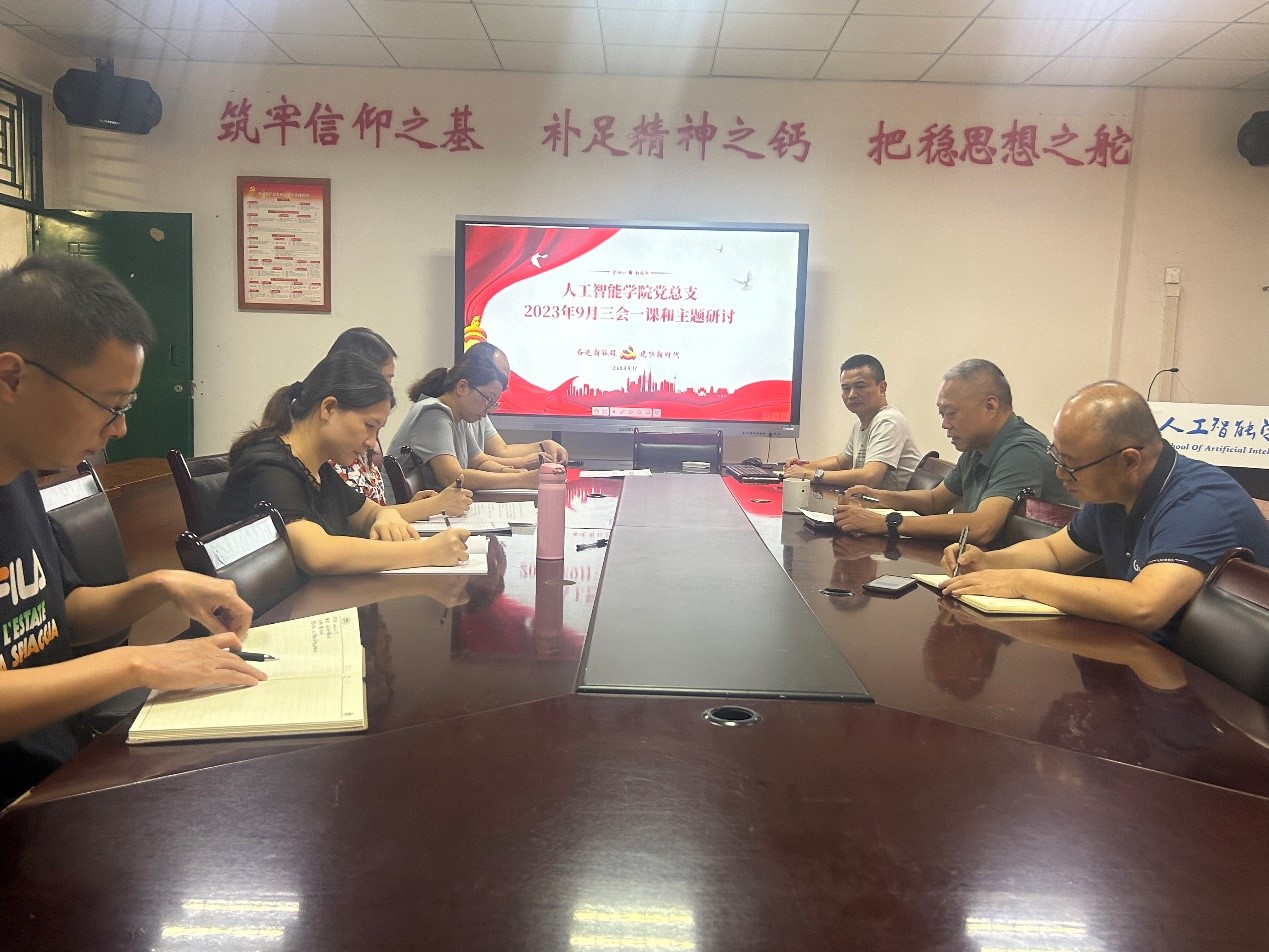 9月11日,人工智能学院党总支在信科楼503开展8、9月“三会一课”和主题党日学习教育专题会。会议由人工智能学院党总支书记熊泽明主持,总支委员、支部书记等8人参加。