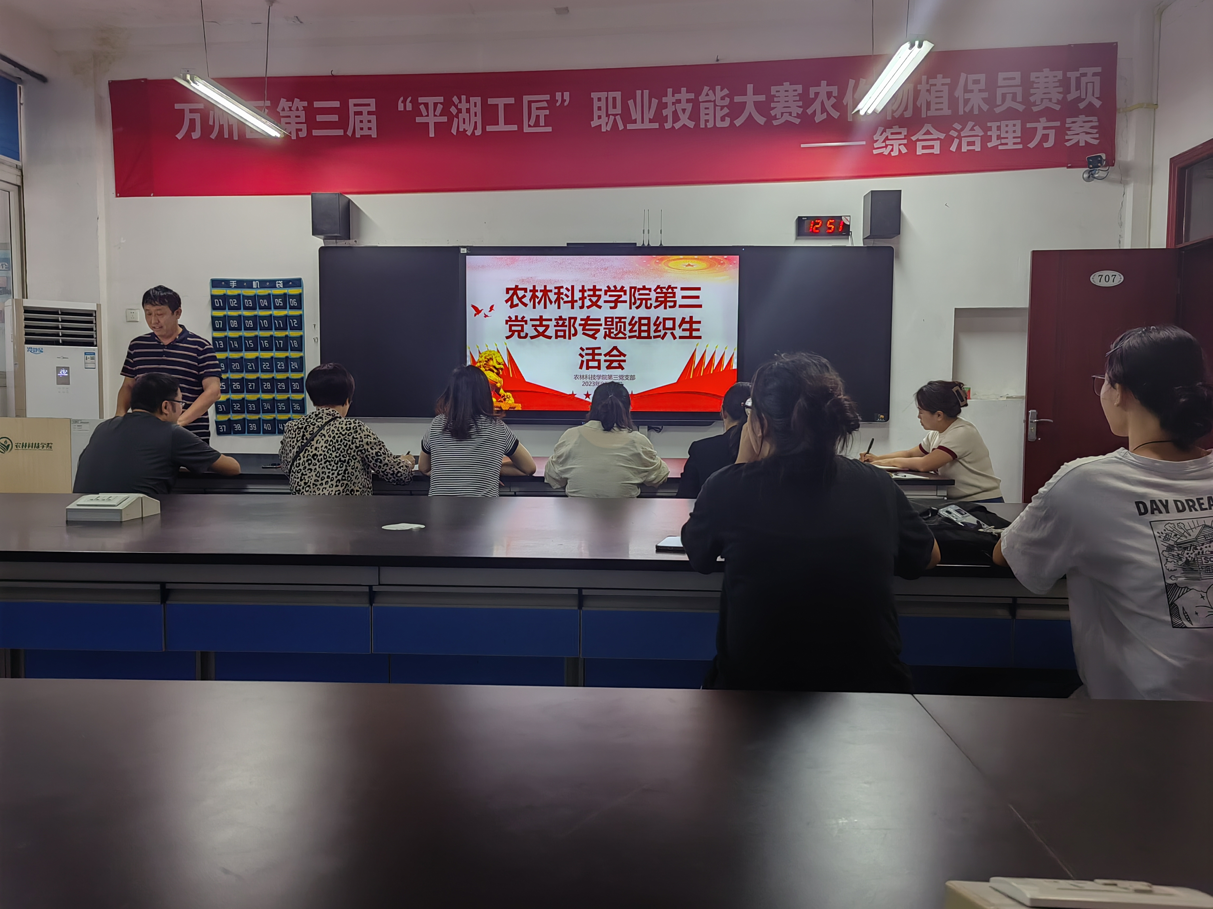 9月12日,农林科技学院第三党支部组织在农林楼707室开展了学习贯彻习近平新时代中国特色社会主义思想主题教育组织生活会,本次会议由党支部书记刘一丁主持,支部全体党员参加。
