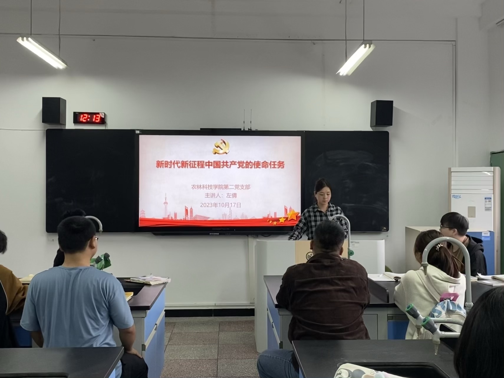 为充分发挥党建引领作用,深入学习贯彻党的二十大精神,农林科技学院党总支第二党支部于10月17日在农林科技学院308教室开展“新时代新征程中国共产党的使命任务”微党课。
