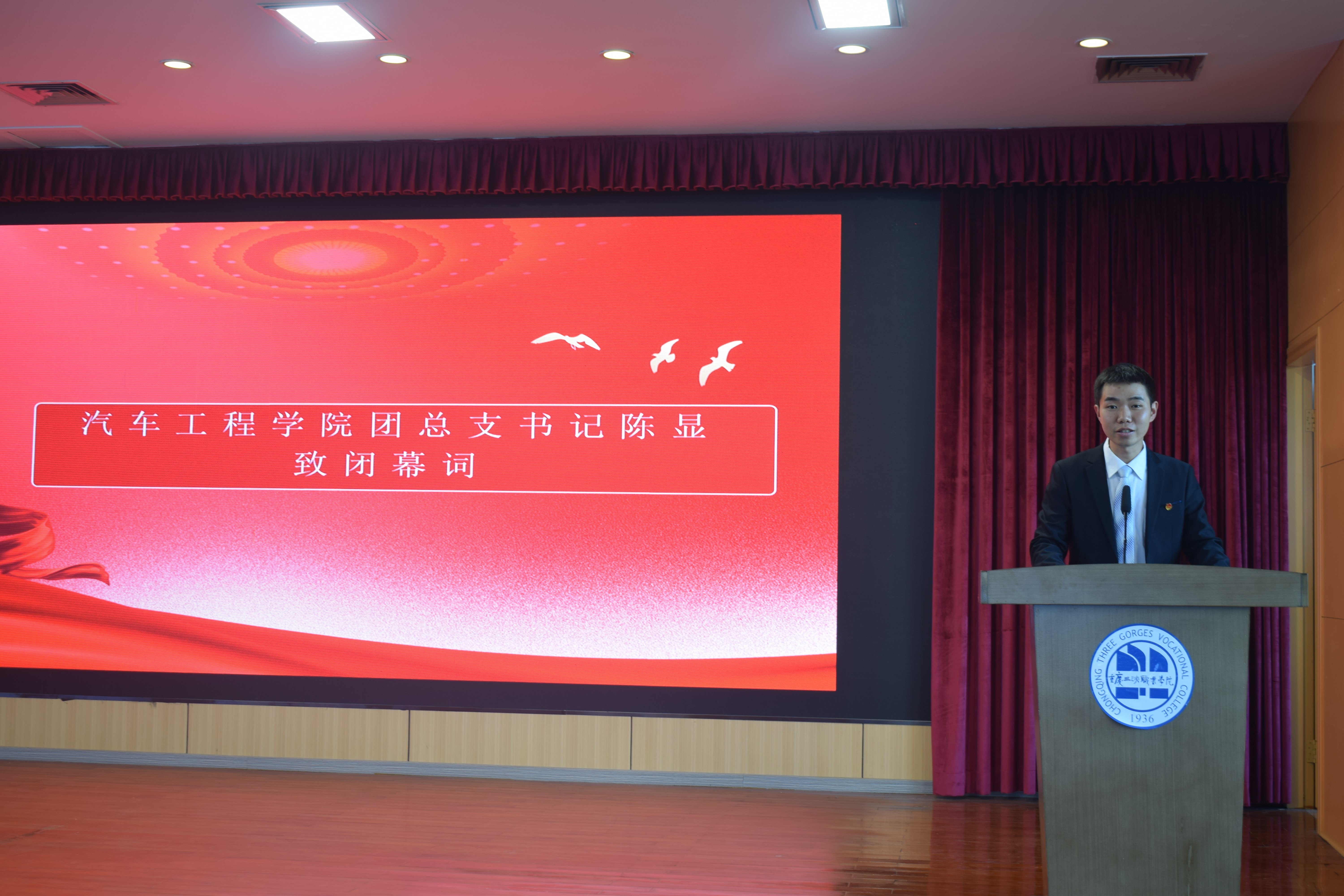 会议最后,汽车工程学院团总支书记陈显作总结发言,他首先代表汽车工程学院向全体与会代表及工作人员的付出表示感谢,向新当选的主席团成员表示热烈的祝贺。希望新一届的团学骨干要严于律己、志存高远、担当作为,团结带领全院青年砥砺前行,为自己的人生再添精彩华章!