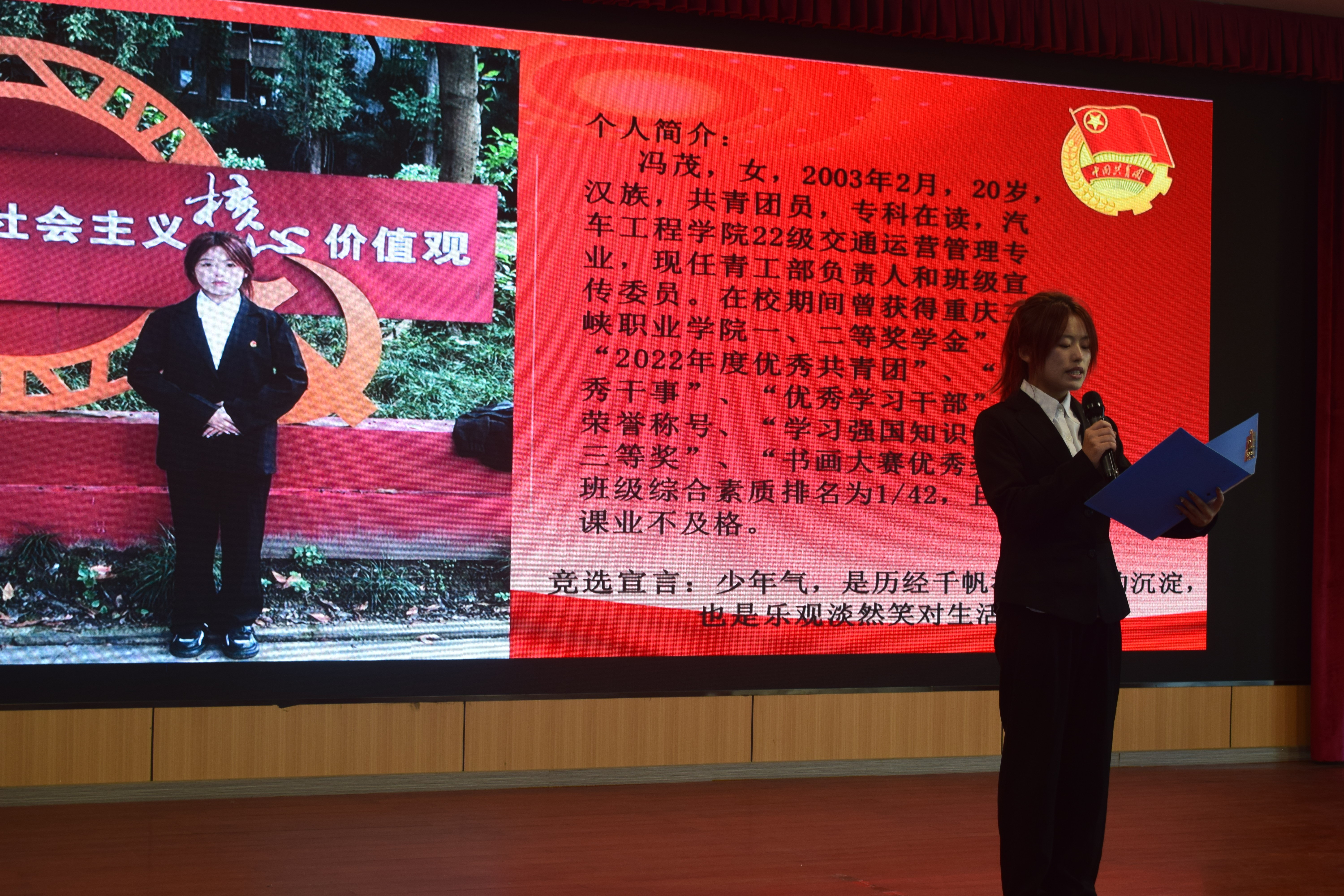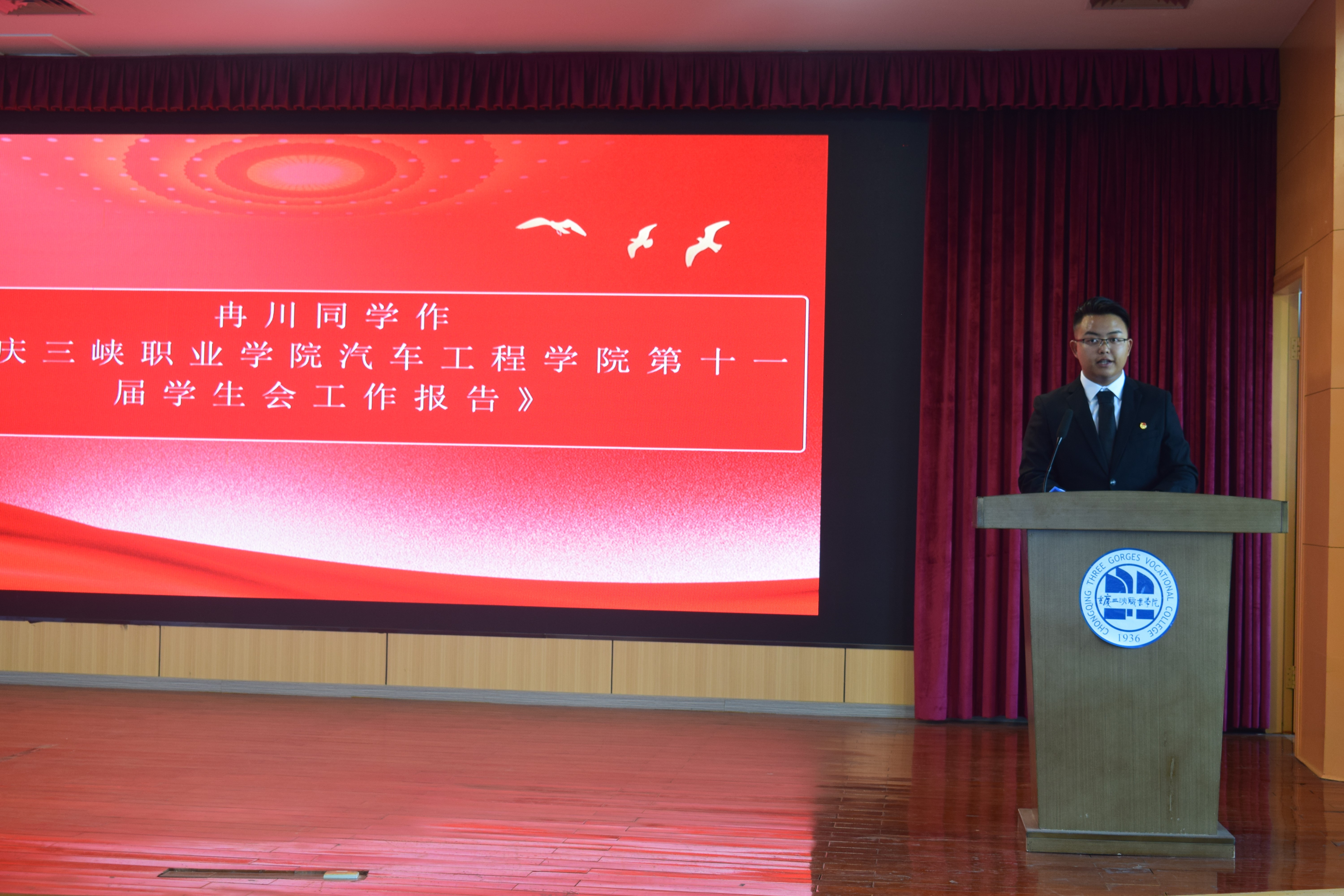 汽车工程学院第十一届主席团成员冉川同学作《重庆三峡职业学院汽车工程学院第十一届学生会工作报告》,报告总结回顾了汽车工程学院学生会过去一年来的工作成果与不足之处,并给出了今后发展建议。