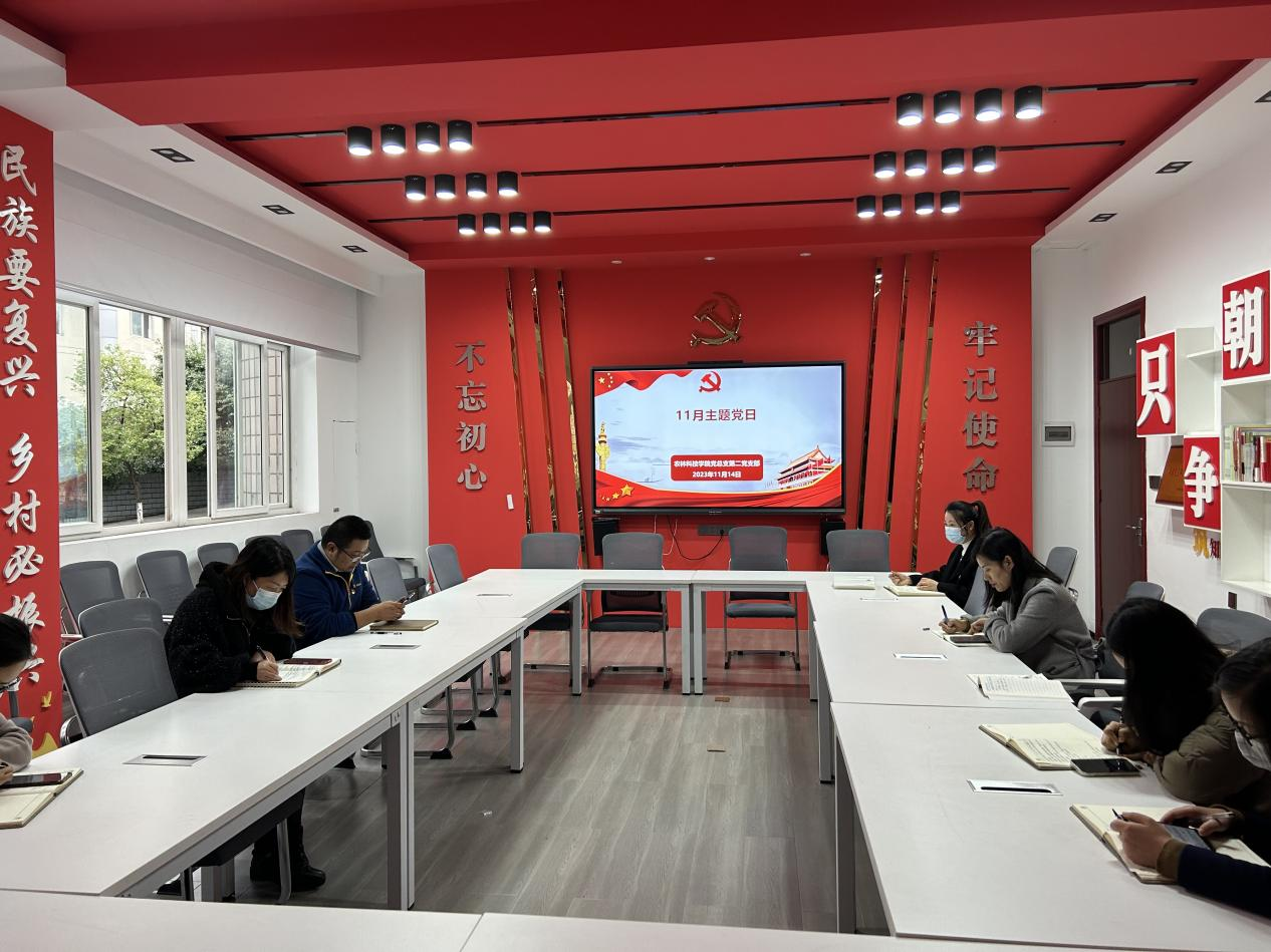 11月14日,农林科技学院第二党支部在农林楼203会议室开展11月主题党日活动,会议由支部书记吴琼主持,徐丹丹领学。