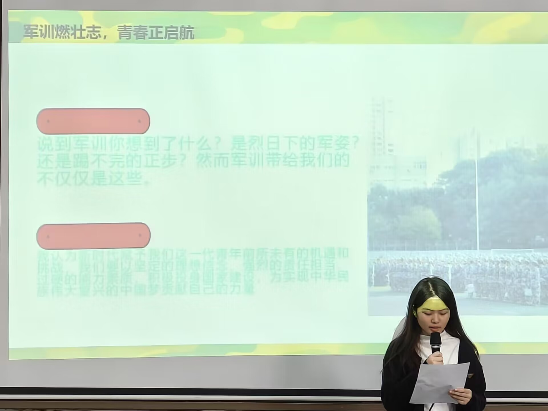 为释放青春激情,激励学生奋发图强,将军训中培养的优秀品质延续到学习生活中,11月18日,人工智能学院在信科楼220举办了“军训燃壮志 青春正启航”演讲比赛。