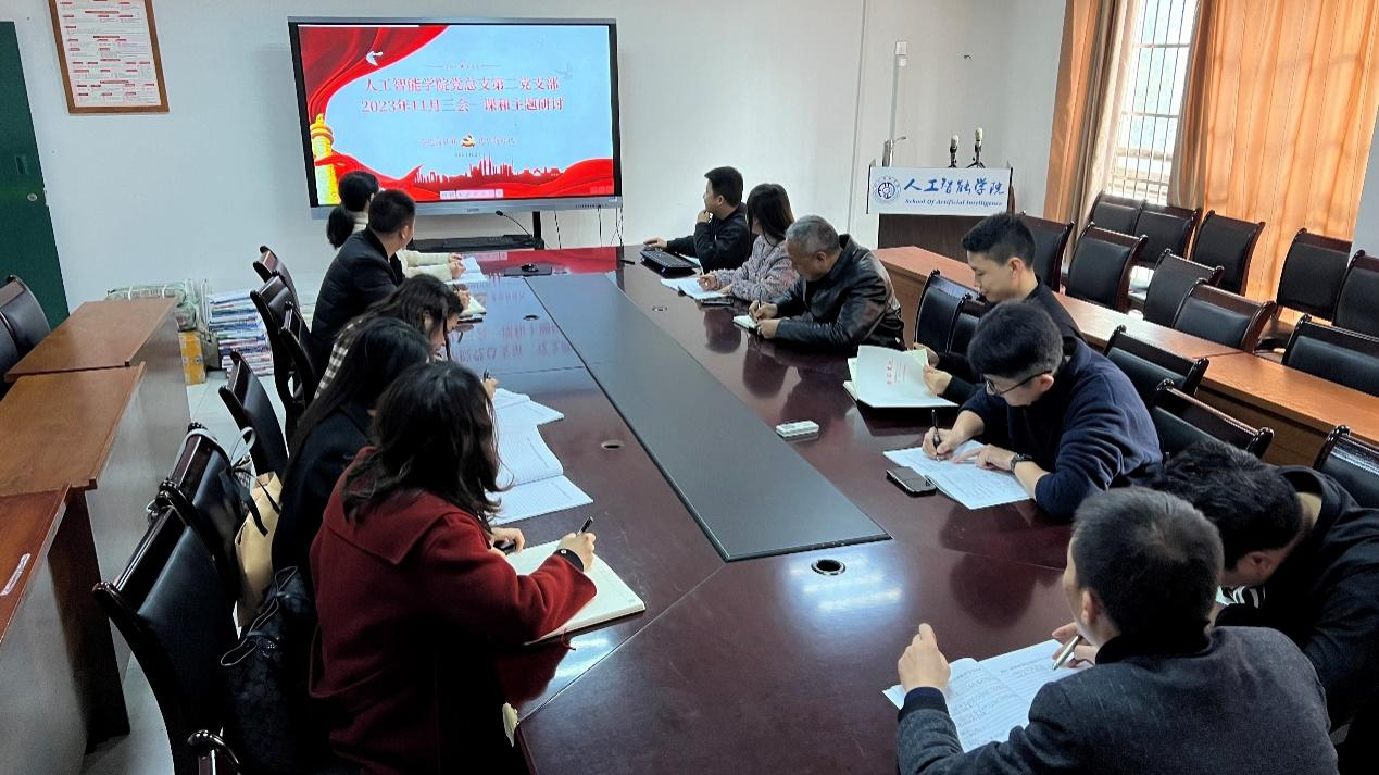 11月21日,人工智能学院第二党支部全体党员在信科楼503会议室开展2023年11月“三会一课”主题活动,本次会议由支部书记雷蕾主持。