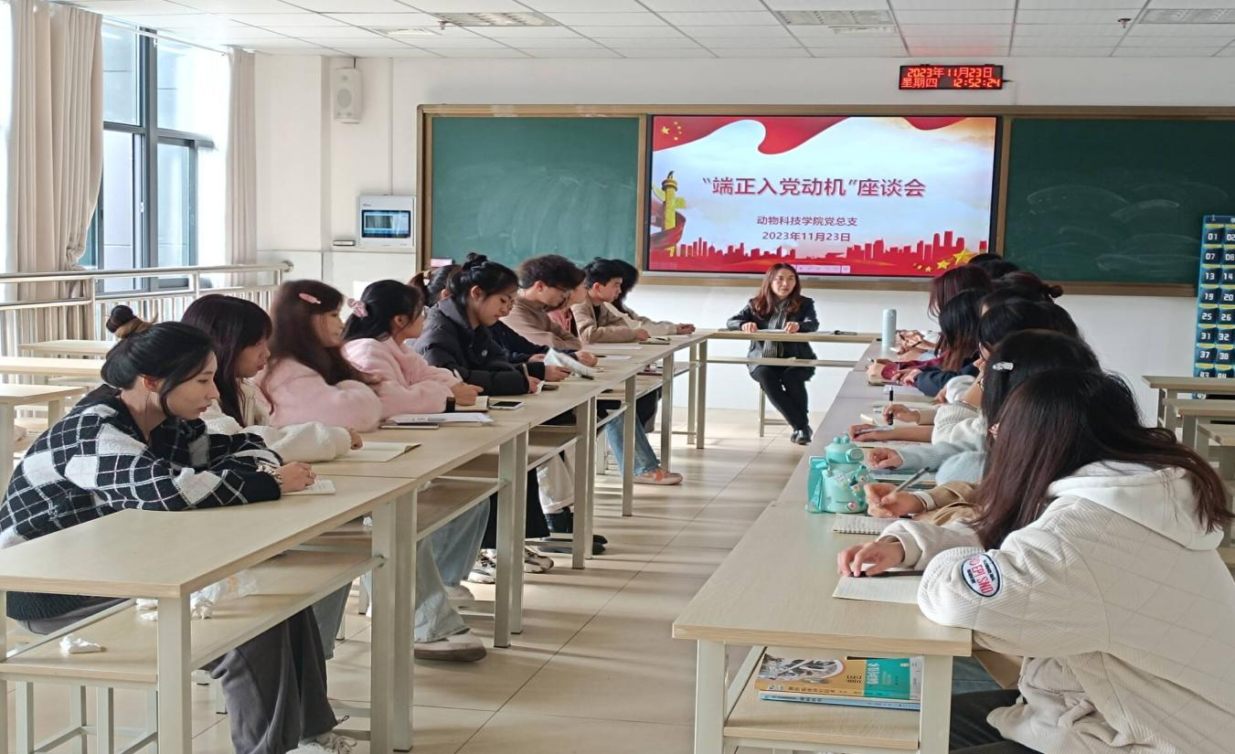 11月23日,动物科技学院在动科楼607开展了“端正入党动机”主题座谈会,本次主讲人动物科技学院专职组织员谭丽老师围绕端正入党动机的意义、正确的入党动机以及如何端正入党动机三个方面,和入党积极分子进行了充分的交流和探讨,并给予在场参会同学殷切希望,要求各位入党积极分子能够树立正确积极的入党动机,坚定理想信念,将党的宗旨和原则贯彻在自身实践中,积极投身于为人民、为社会、为共产主义而不懈奋斗的道路上。
