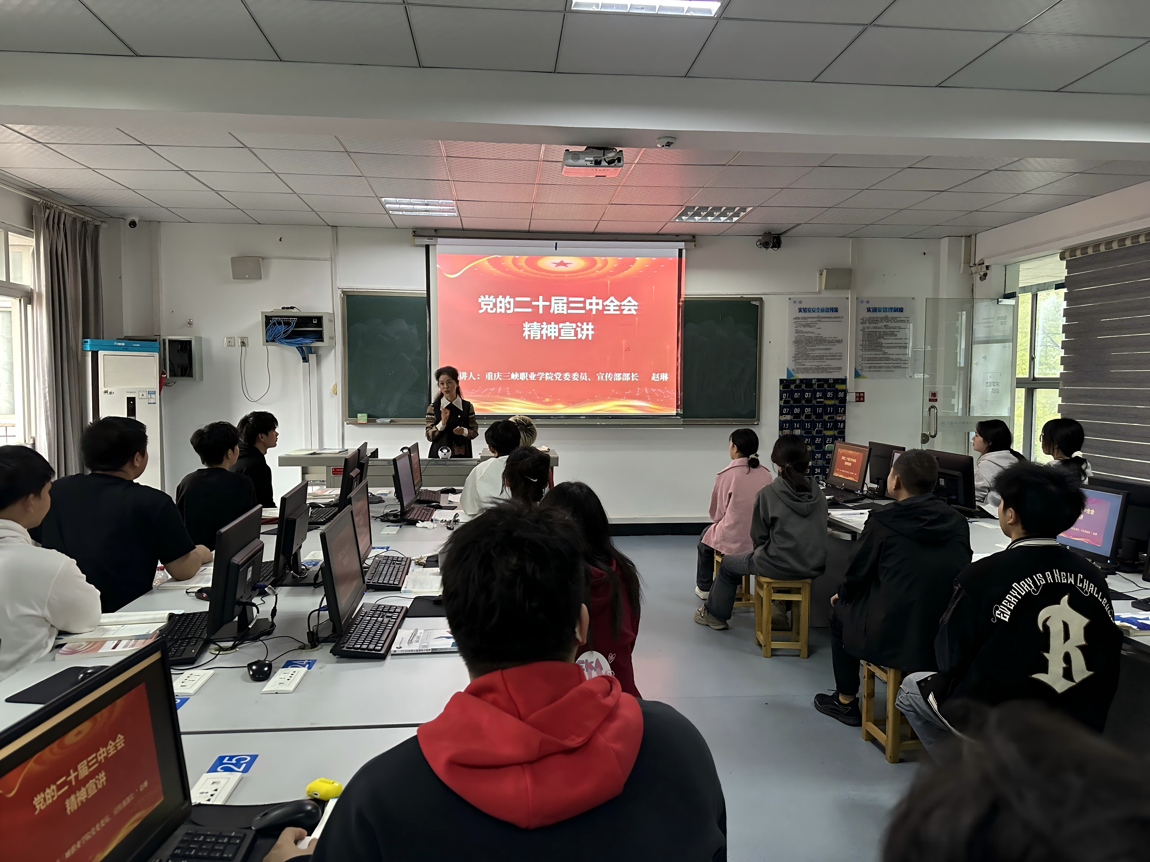 按照学院党委关于印发《学习贯彻党的二十届三中全会精神宣讲方案》安排,10月12日,学院党委委员、宣传部部长赵琳在信科楼509教室,为人工智能学院党总支师生宣讲党的二十届三中全会精神。会议由人工智能学院党总支副书记丁翠娟主持,学院50余名师生参加。